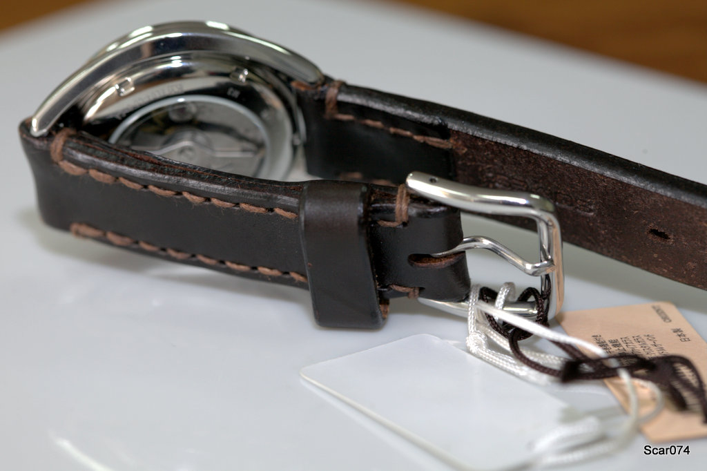 - Band material (surface treatment): Bridle leather (используемая для производства уздечек и прочей сбруи, толстенная и очень мягкая, качественно прошитая кожа)