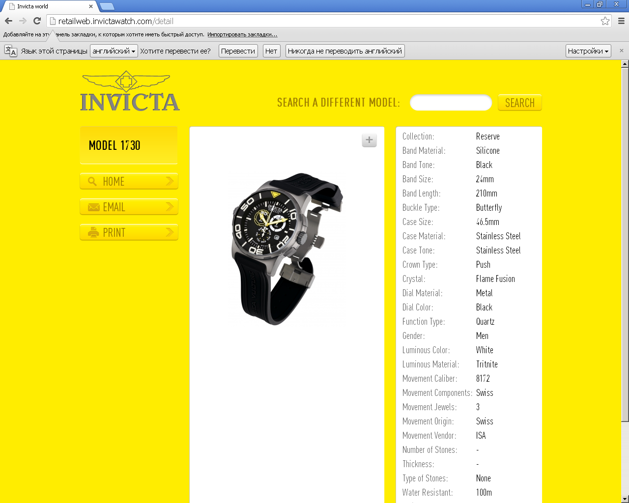 Часовой форум Watch.ru - Показать сообщение отдельно - Invicta 1730 Reserve Sea Vulture Collection Swiss Made Chronograph 100M Mens Watch