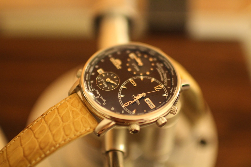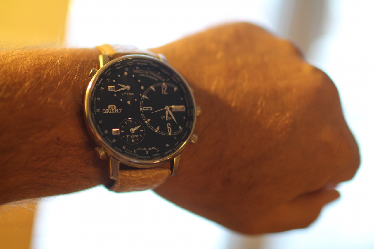 Мое первое ощущение - часам недостает ощущения законченности, лоска какого-то часового. Наверное, нелепо ожидать этого от часов за полтора килоевро с тремя моторами. В любом случае, часы имеют несомненную коллекционную ценность, ценность же практическая, как бы помягче сказать… менее бесспорна, что ли (это я говоря как упорный поклонник трехстрелочников). Основное удовольствие от них получается при разглядывании механизмов в задних иллюминаторах, такая интересная игра механики. На руке лично мне не очень удобны, несмотря на крупное запястье, думаю попробовать переставить их на браслет и поносить. Надпись на цифере – просто ORIENT , т.е согласно классификации ув. dmitriy ed - начальная линейка. Для начальной линейки – очень неплохо. Опять же лимита, практически уникальный набор усложнений, полный комплект и идеальное состояние(на это и повёлся в свое время).