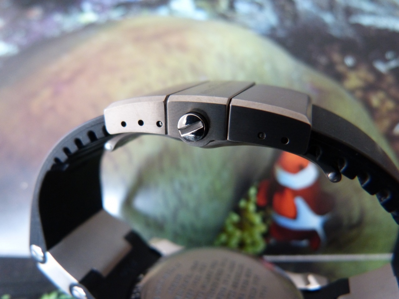 РЕМЕШОК: чёрный каучуковый с логотипом компании на титановых вставках