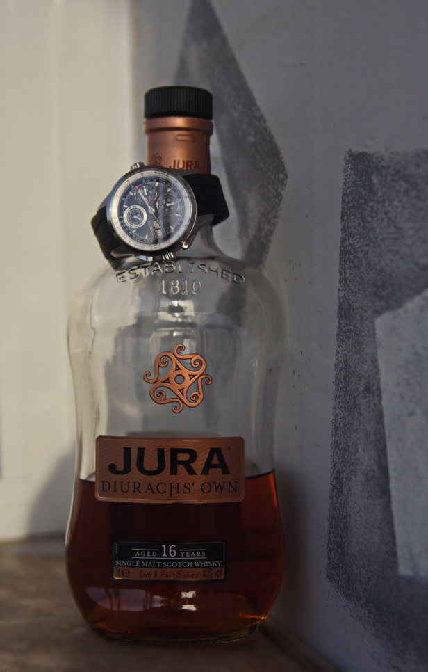 Итак “который сейчас час”. Да на циферблате много различной информации и можно сказать, что он перегружен. Но прошло меньше недели и я привык к аналоговому время исчислению, если так можно выразиться, конечно с точностью до минуты время не скажешь (минутные риски на 6, 9 и 12 часах “съели” дополнительные циферблаты хронографа). На фото ниже так же видно букву "Н" которую я ранее не видел в обзорах в обычном режиме закрыта часовой стрелкой хронографа.