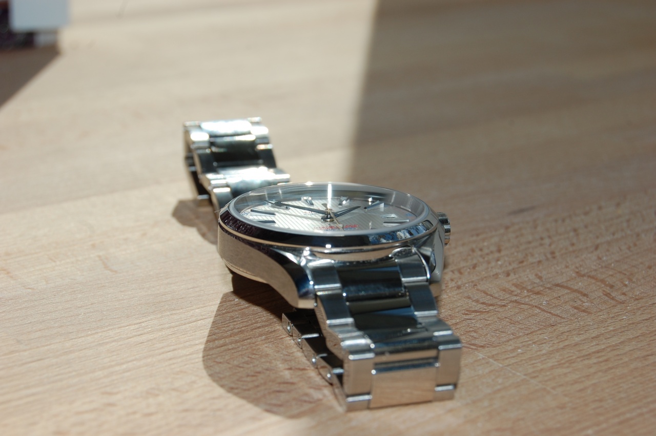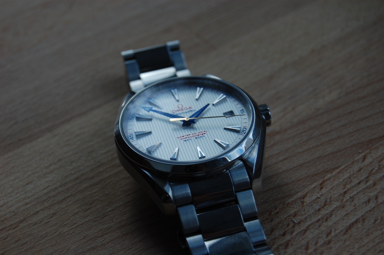 Изначально хотел Planet Ocean с оранжевыми метками на браслете, но когда увидел новую версию AT с золотой стрелкой синими переливающимися стрелками, да красными метками, плюс еще антимагнитную, решил брать её.