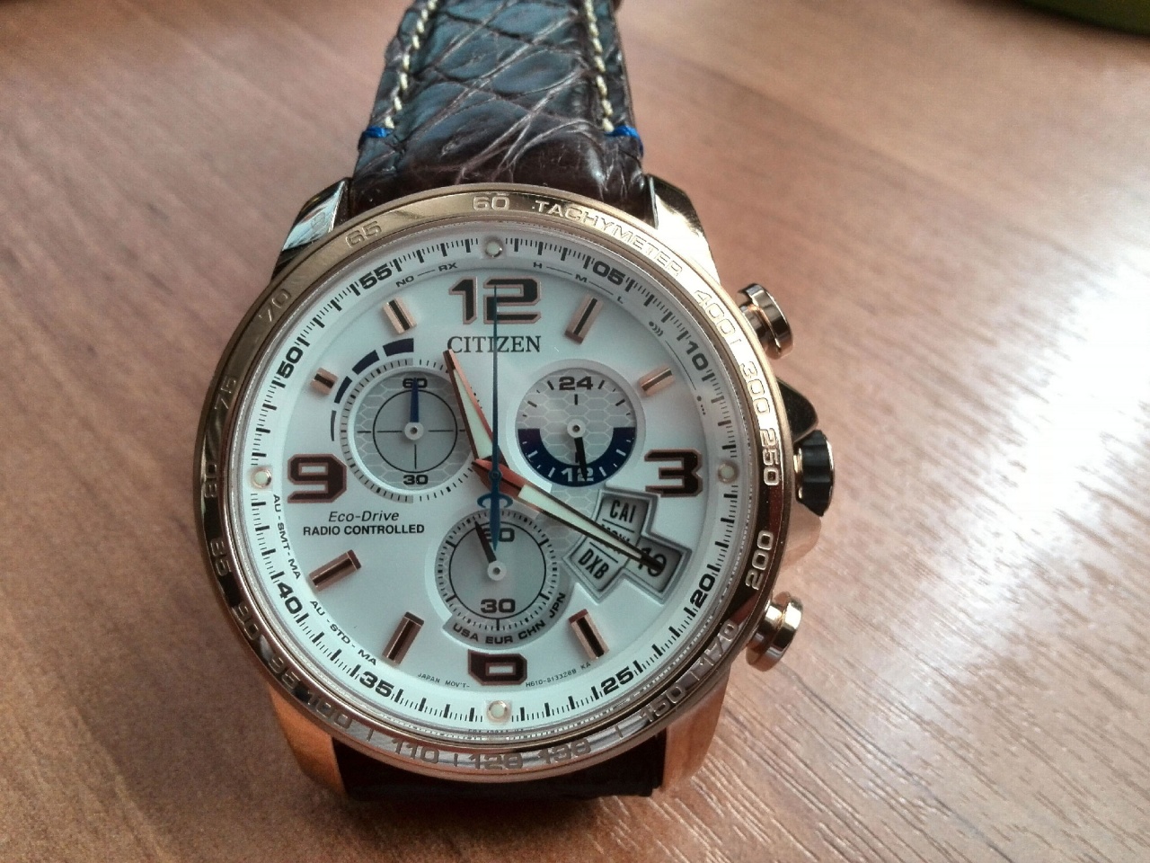 Собственно часы доехали. Первое впечатление - положительное. Толщина несколько больше, чем ожидал. В остальном выглядят великолепно, и уж точно, дороже своей реальной стоимости. Вес на руке не напрягает. Радиосинхронизация работает. Фоткал на телефон.