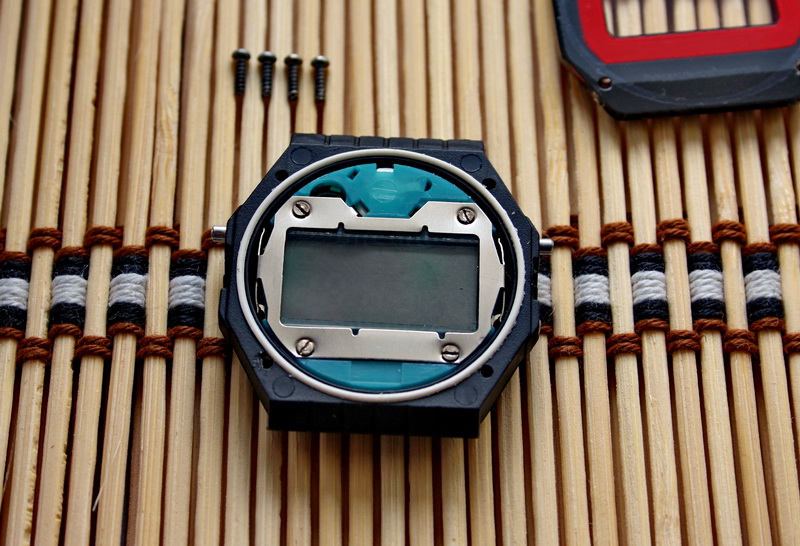 Часы разбираются через переднюю часть, нужно выкрутить винты.