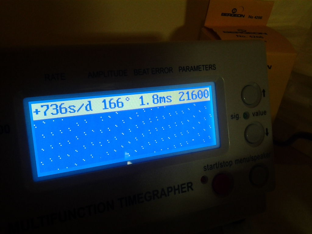 Часы не шли. Были грязные. Разобрал, помыл, почистил. Собрал. Смазал все, за исключением инкаблоковых узлов (пока). Запустились с пол оборота. Только ход какой то неровный. И тайм-графер показывает странный узор. Думал сначала волосок в масле. Снял баланс, промыл в "one deep solution", просушил. Эффект тот же самый. Следующая версия - намагниченость. Размагнитил баланс. Не помогло. Да и волосок после установки не слипается. Спираль ровная. Намагниченость от других деталей тоже маловероятна: платина и мосты - бронзовые. Стальные детали не липли ни друг к другу, ни к отвертке.