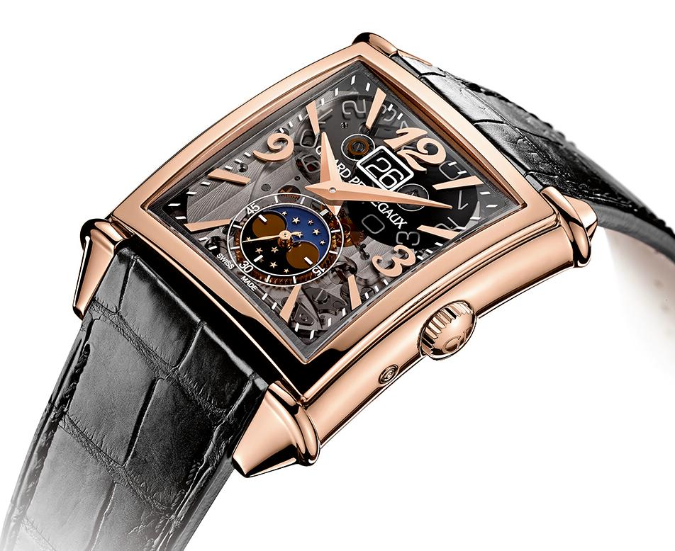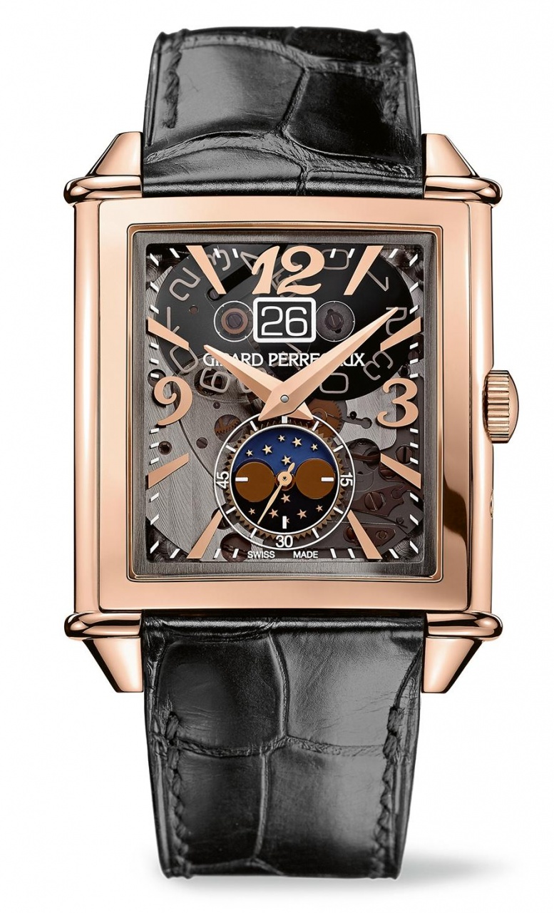 Новая модель Vintage 1945 Large Date Moonphase от швейцарской часовой компании GIRARD-PERREGAUX является достойным продолжением коллекции Vintage 1945, которая на протяжении более пятидесяти лет представляет собой неисчерпаемый источник вдохновения для разработки новых моделей. Новинка, сочетающая в своем дизайне ар-деко, классику и современность, отличается сапфировым циферблатом и выпущена в двух версиях: в 18-каратном розовом золоте и в нержавеющей стали.
