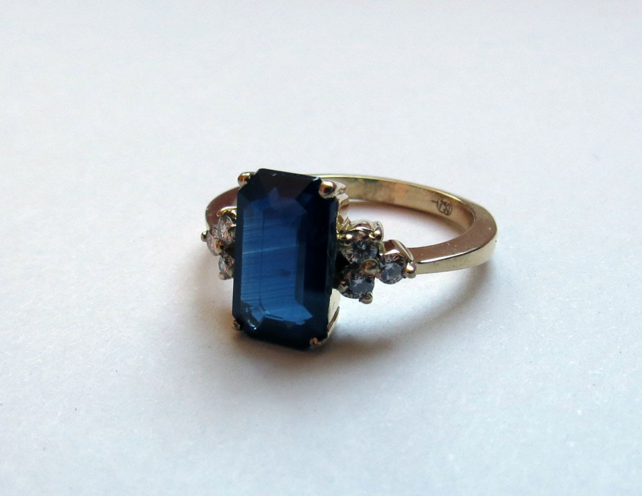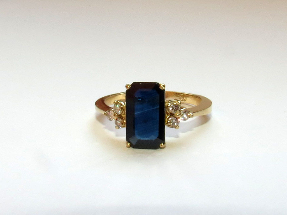 Кольцо с натуральным синим сапфиром весом 3.1 карат 11 х 7 мм прямоугольной огранки. Тёмно-синий цвет, небольшие включения - горизонтальные полосы (не трещины).