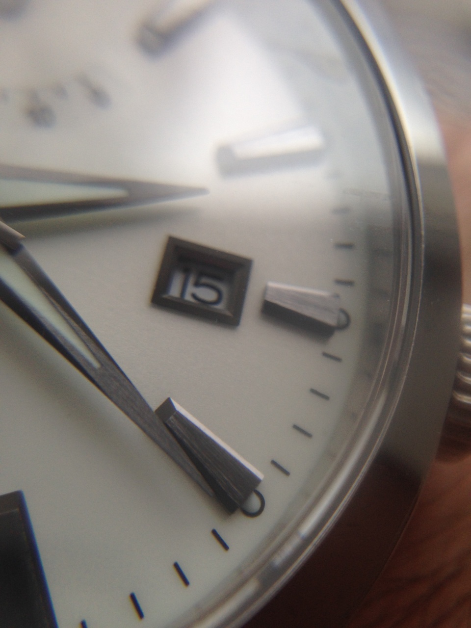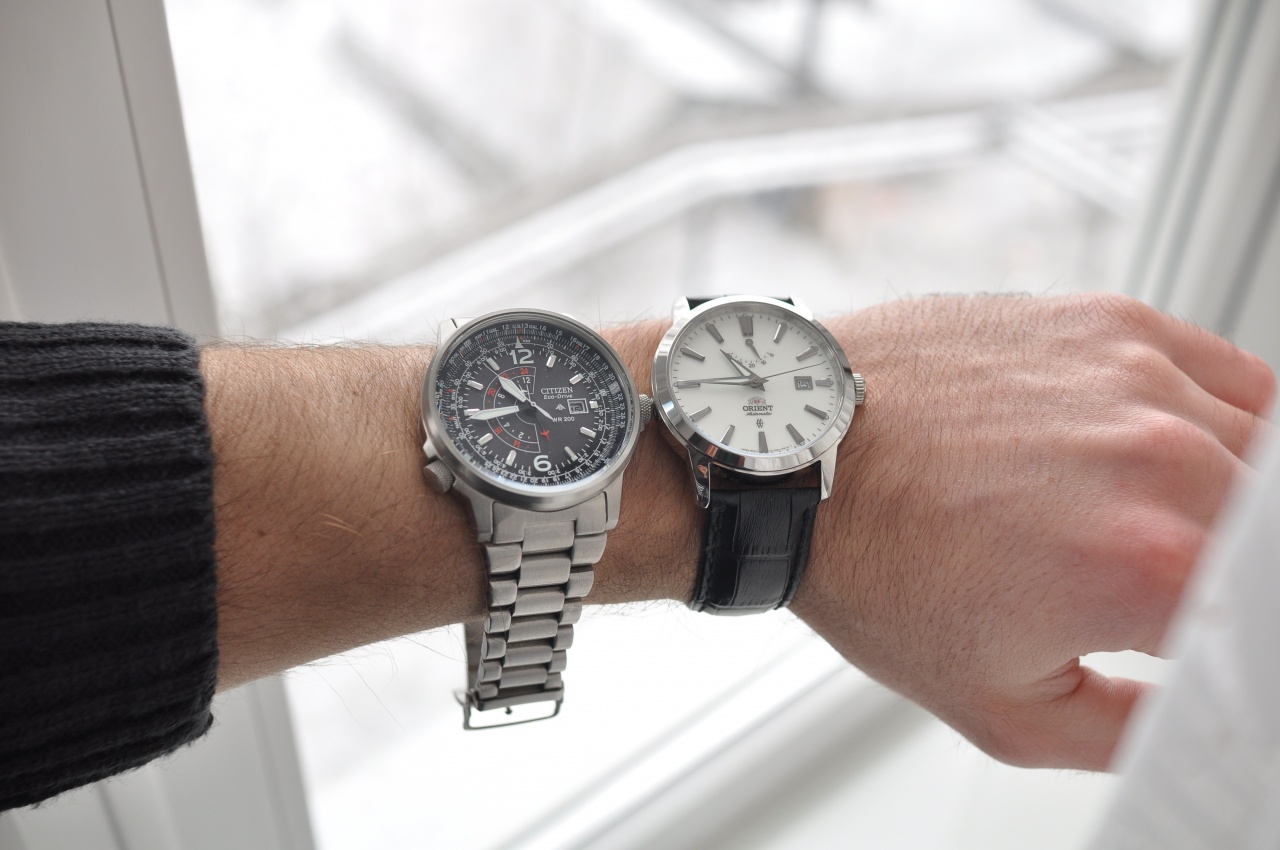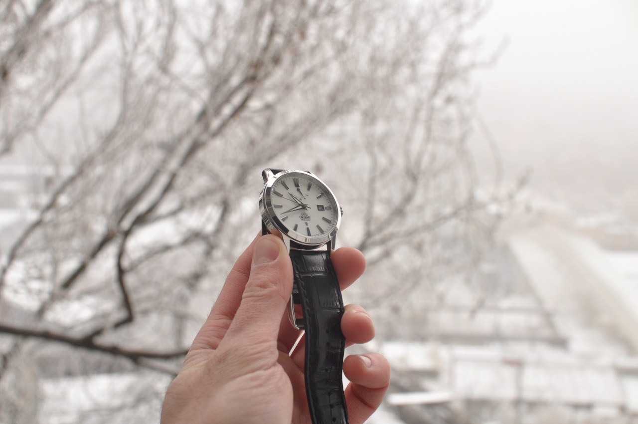 Наконец- то дошли руки сделать фото. Кстати, когда смотрел фото перед покупкой, думал что циферблат белый,а стрелки стальные, на самом деле циферблат перламутр, стрелки графит. Люминесцент слабенький. Часами оч доволен
