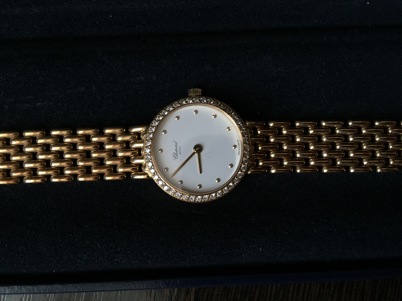 Часы из золота 750 пробы с бриллиантами вокруг циферблата, вес 40,6гр , паспорта к сожалению нет. Часы не носились, на задней крышке до сих пор наклейка. На обратной стороне выбит номер 452900 на другой строчке 919. Возможен небольшой торг. Проживаю г.Москва, метро Тропарево.