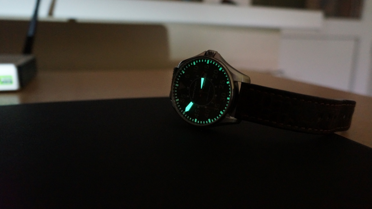 Люм слабый. Сияет очень красиво при подзарядке. Через 15-30 минут нанесенные риски не видно. Стрелки к утру при желании можно разглядеть, учитывая адаптацию глаза к темноте.