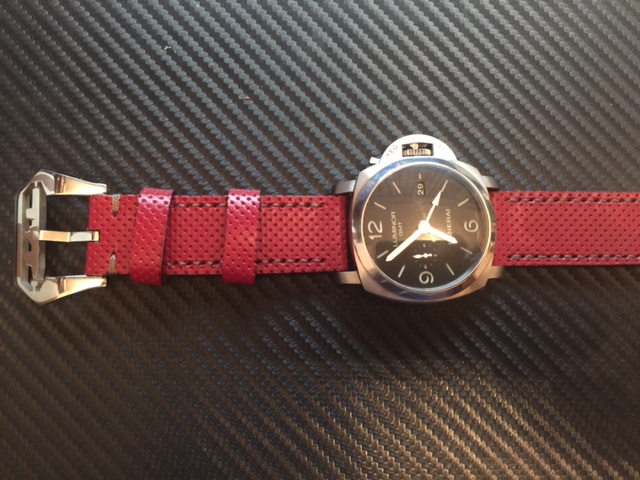 1) Ремешок красный из перфорированной кожи, ручной, из Кипра. Делал на заказ, но с длиной ошибся - 140/80. Бакля и часы не продаются