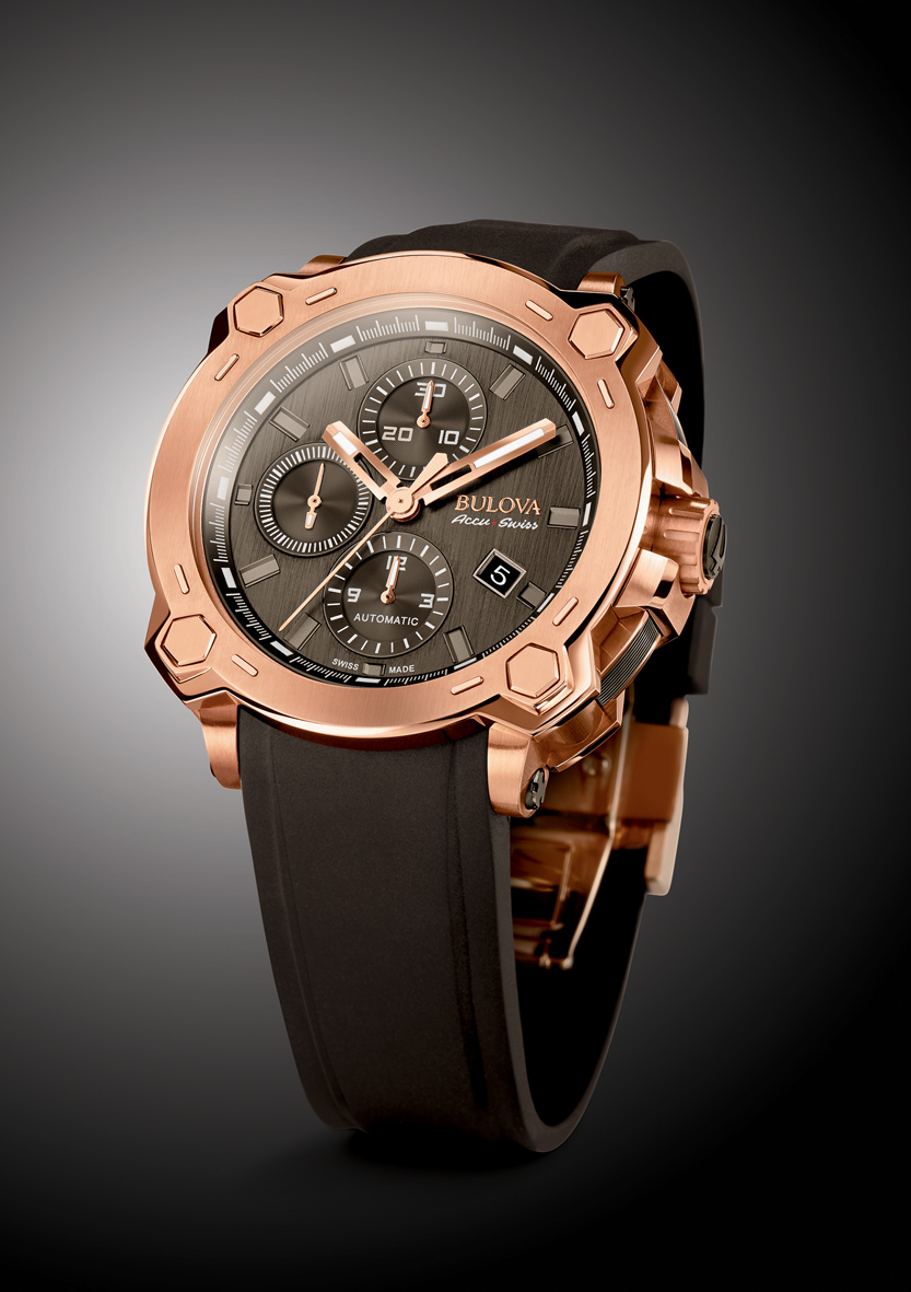 На международной часовой выставке Baselworld-2015, которая состоялась в прошлом месяце, швейцарская часовая компания Bulova официально представила свою новую модель AccuSwiss Percheron Chronograph.