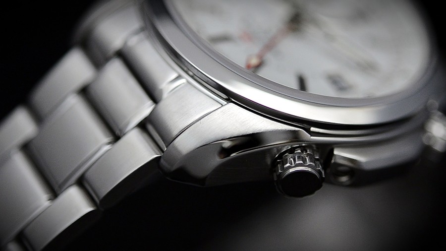 Мужские механические часы со вторым часовым поясом в 24-х часовом формате времени, отображается центральной стрелкой. Ретроградные указатели дня недели и запаса хода на 40 часов.