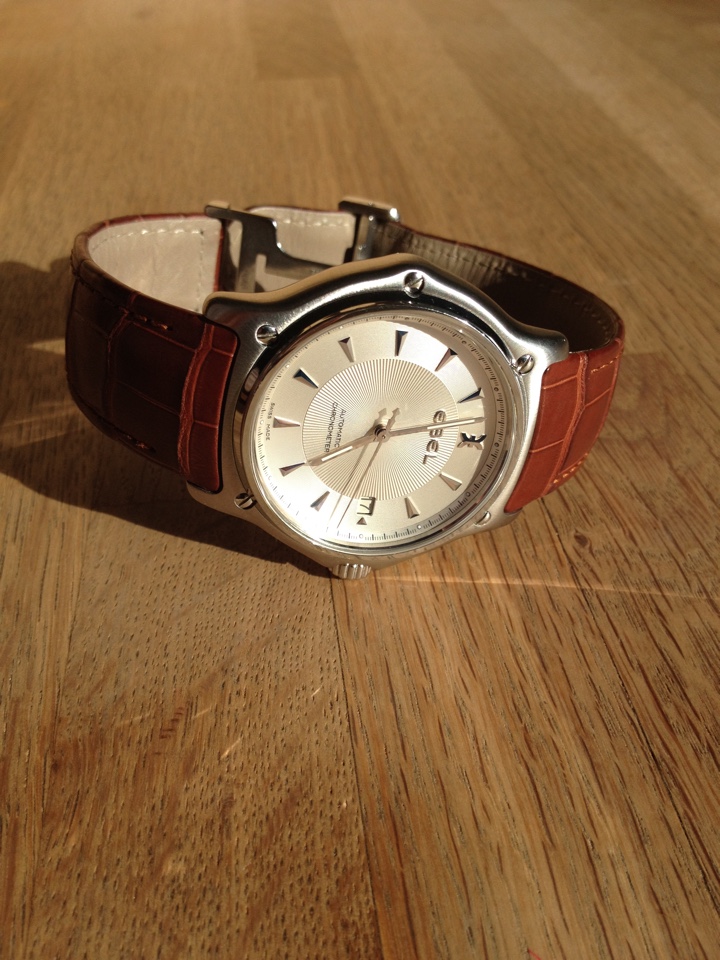 Престижные мужские часы с автоматическим механизмом. Точность хода заверена сертификатом COSC. Эргономический дизайн. Корпус с гладкими очертаниями имеет традиционную для часов Ebel шестигранную форму и 5 винтов на фронтальной поверхности. Часы в превосходном состоянии после полного репассажа, добавлен в комплект оригинальный крокодиловый ремень и клипса!!!