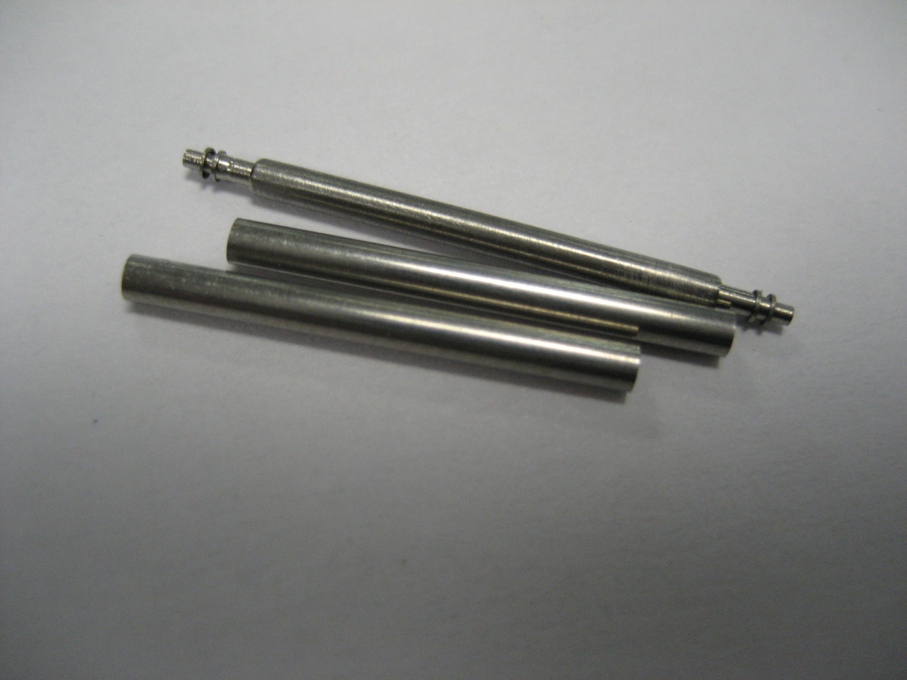 Предложу свое решение проблемы. Идея в том, чтобы увеличить диаметр родной шпильки с одновременным увеличением толщины ее стенки. Это важно. После недолгих поисков было решено использовать для этого иглу для пирсинга. Она выполнена из хорошей медицинской стали (я надеюсь), недорогая и, как оказалось, ее легко достать. Была куплена такая игла наружным диаметром 1,8мм, внутренний должен был быть 1,6мм, как раз как родная шпилька. Из иглы делаются две трубки длиной 18,5мм. По идее они должны были просто плотно сесть на шпильки и все, но внутренний диаметр иглы оказался меньше чем наружный диаметр шпилек. Пришлось притерать мелкой наждачкой шпильки примерно на пять соток каждую. После этого трубки плотно, с небольшим натягом сели на шпильки. То что надо. В итоге получаем шпильки наружным диаметром 1,8мм с увеличенной толщиной стенки. Шпильки весьма и весьма крепкие. После рассверливаем отверстия в браслете. Изначально они 1,7мм в плюс. Рассверливал сначала сверлом 1,8мм, потом 1,9мм. Сверлится бормашинкой, проблем нет. Затем аккуратно увеличиваем диаметр ушек на декоративных накладках под новые шпильки. После собираем. Все ровно и красиво. Если будут проблемы в процессе эксплуатации - напишу.