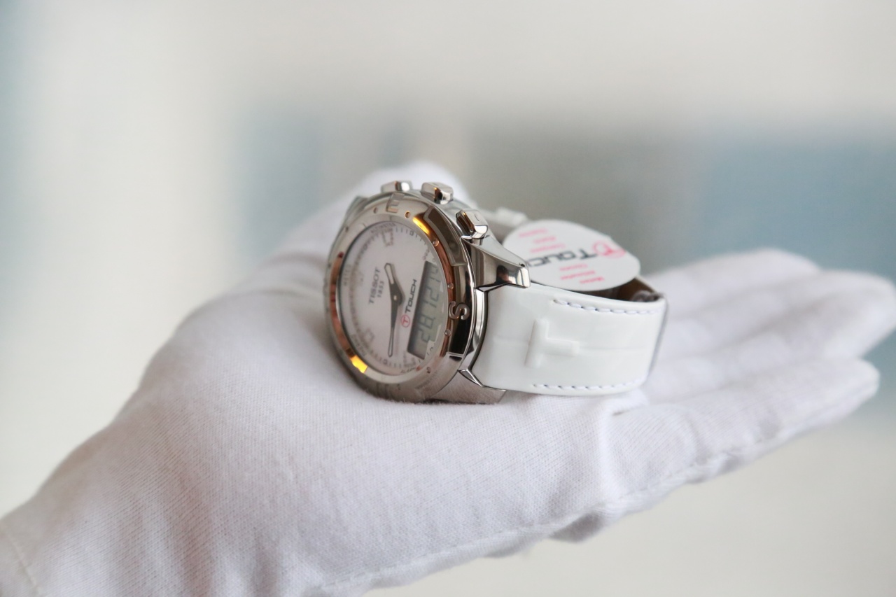Хронометр Tissot T-Touch II отличается стильным дизайном и прекрасными техническими характеристиками, а по набору функций вполне может соперничать с профессиональными спортивными измерительными приборами. Функции компаса и прогноза погоды вместе с альтиметром и уровнем водонепроницаемости до 10 бар (100 м / 330 фут) гарантируют надежную поддержку и помощь в любом путешествии, будь то горные восхождения и катания на лыжах или отдых на берегу океана.