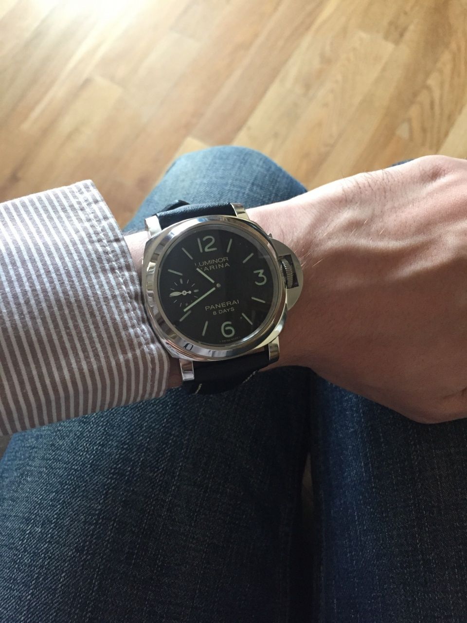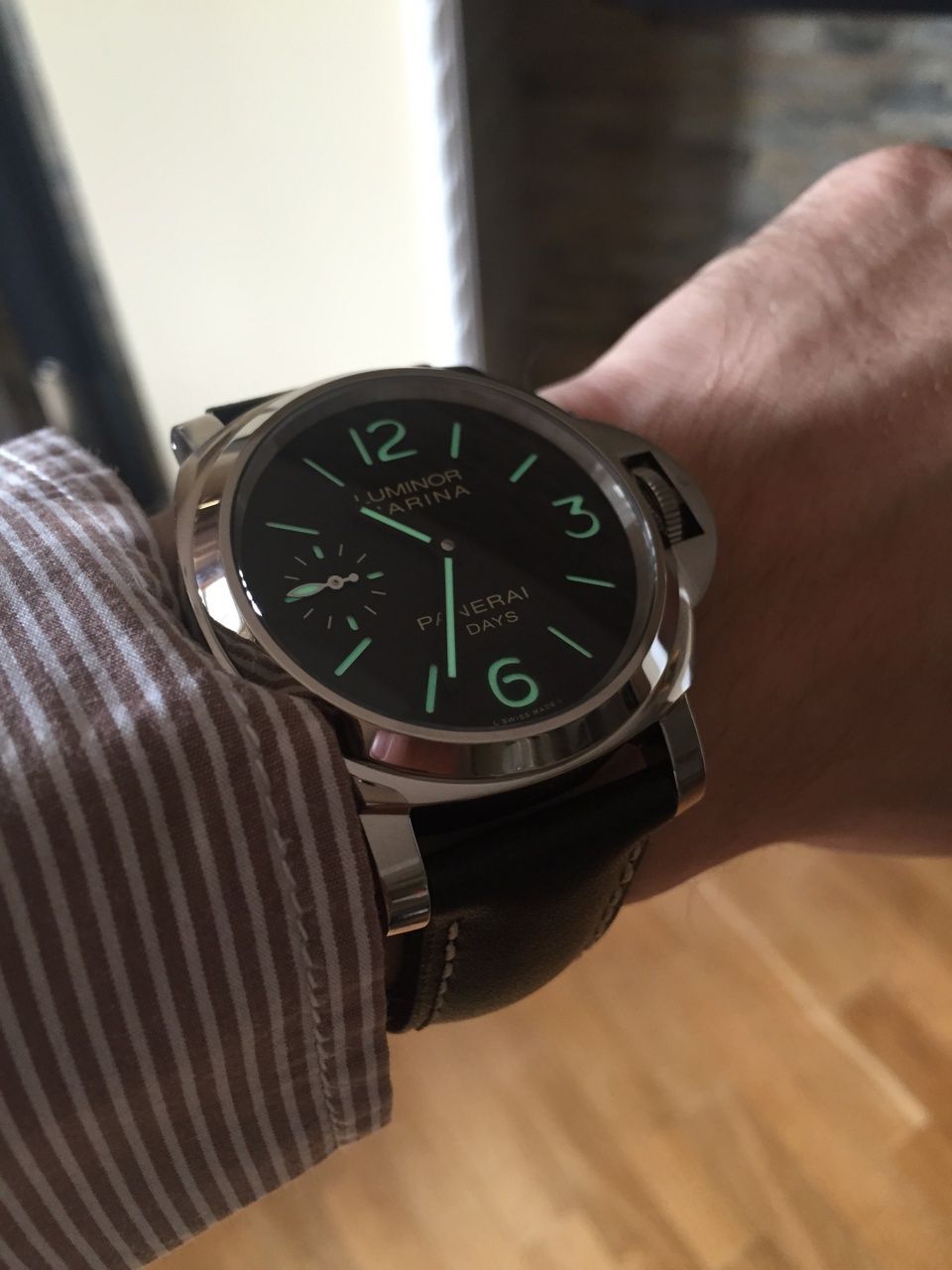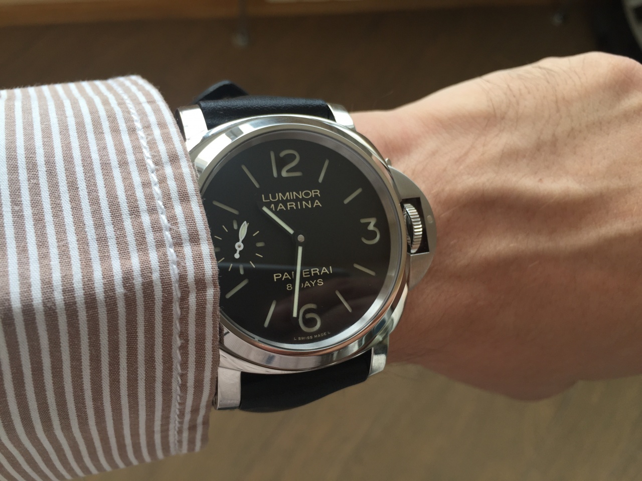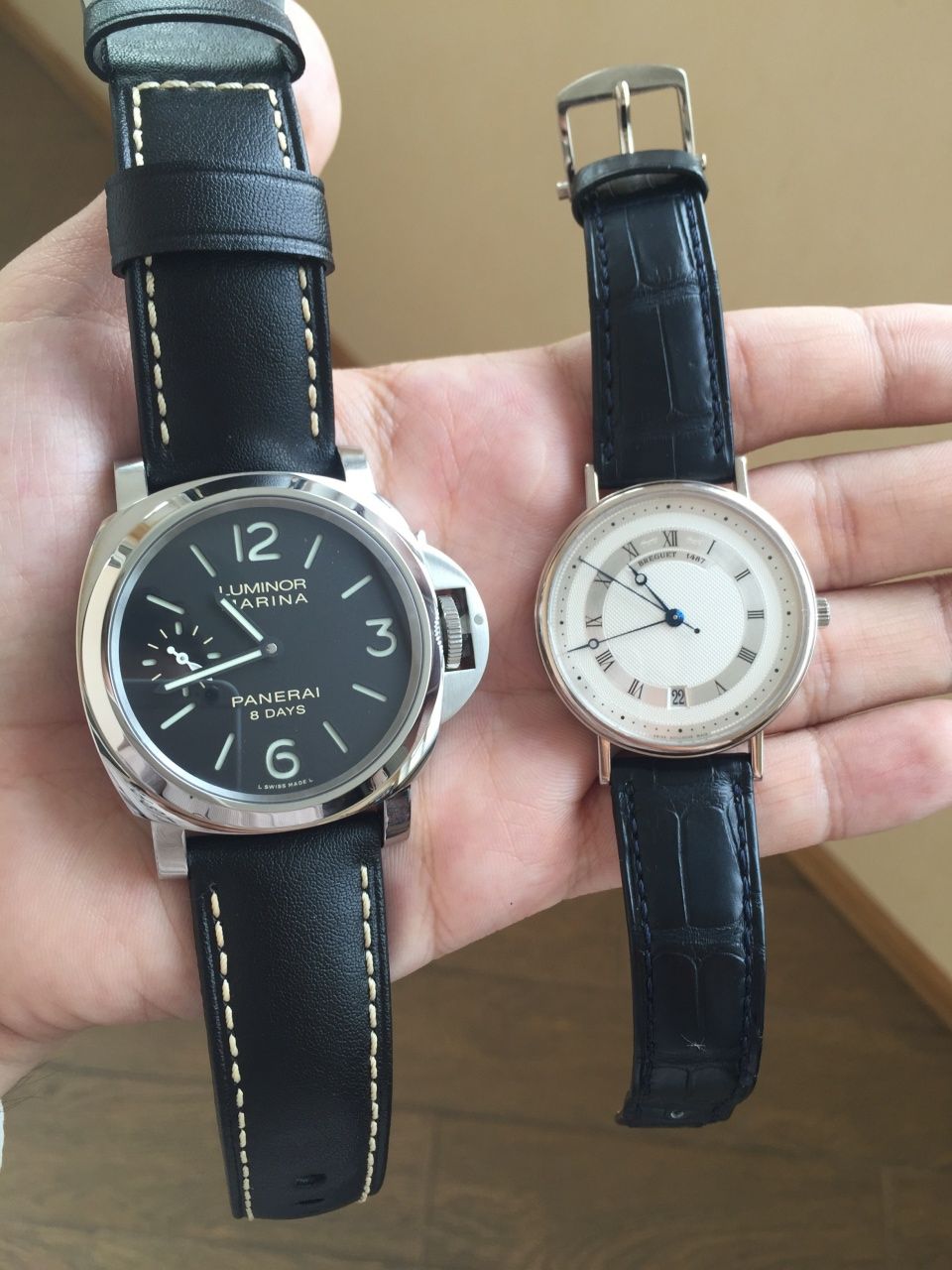 долго выбирал вариант, ни смотря ни на что, хотел 44 м, автомат и дату. От автомата из-за чуть менее удобной посадки пришлось отказаться. Дата в маленьком окошке на крупных часах тоже визуально не очень нравится, решил отказаться и от нее. В итоге выбор свелся к 111 вс 510. Самый лаконичные и каноничные труъ памы. Первые чуть потолще, а во-вторых к тому же еще и есть фирменная памовская фишка про 8 дней. Наверное на этот маркеТинговый трюк я и купился