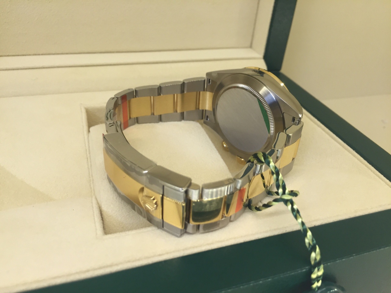 Корпус Oyster, 40 мм, сталь и желтое золото, Конструкция Oyster Цельный корпус, привинчиваемые крышка и заводная головка, Диаметр 40 мм, Материал Желтый Rolesor (сочетание стали 904L и 18-каратного желтого золота), Безель Фиксированный, с выгравированной тахиметрической шкалой, из 18-каратного желтого золота, Заводная головка Привинчиваемая, с системой тройной герметизации Triplock, Стекло Сапфировое, устойчивое к появлению царапин, Водонепроницаемость До 100 м, Механизм Perpetual, механический хронограф, автоматический подзавод, Калибр 4130, производство Rolex, Функции Центральные часовая, минутная и секундная стрелки, маленькая секундная стрелка в положении «6 часов». Хронограф с центральной стрелкой с точностью до 1/8 секунды, 30-минутный счетчик в положении «3 часа», 12-часовой счетчик в положении «9 часов». Возможность остановки секундной стрелки для выставления точного времени, Точность Сертификат COSC, Осциллятор Синяя парамагнитная спираль Parachrom, Завод часов Автоматический подзавод в двух направлениях с помощью ротора Perpetual, Браслет Oyster, плоские трехрядные звенья, Материал браслета Желтый Rolesor (сочетание стали 904L и 18-каратного желтого золота), Застежка безопасности Oysterlock с раскладывающейся пряжкой и удлиняющим до 5 мм звеном Easylink, Циферблат Синий, Детали Секундный счетчик со спиралевидным мотивом.
