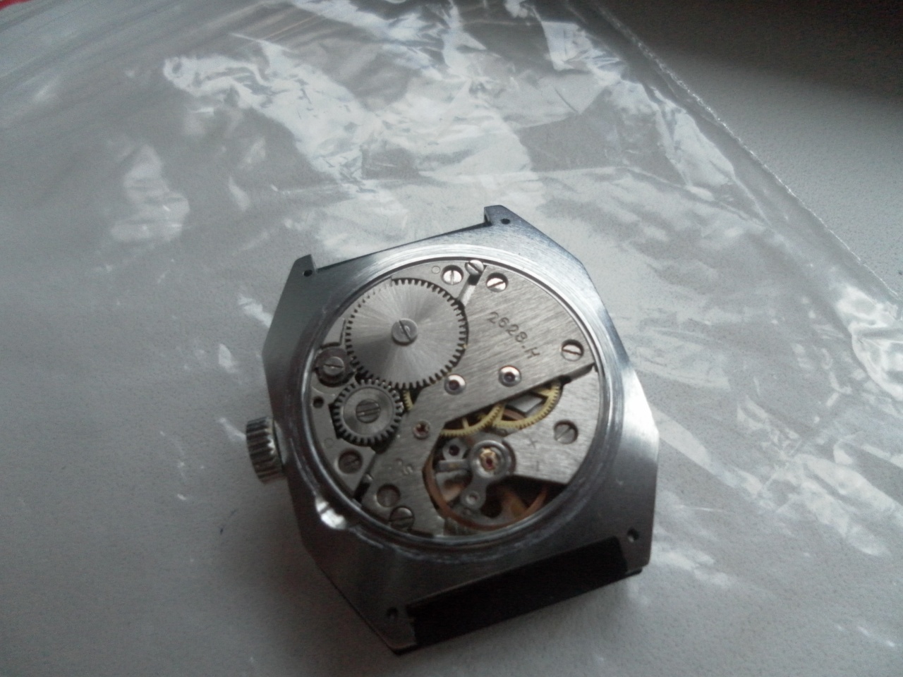 Механизм калибра 26 мм, высотой 5,4 мм на 19 рубиновых камнях. Центральная секундная стрелка, противоударное устройство оси баланса и двойной календарь мгновенного действия, показывающий числа месяца и дни недели. Средний суточный ход -10 сек. +40 сек. Продолжительность действия от полного завода пружины не менее 40 часов.