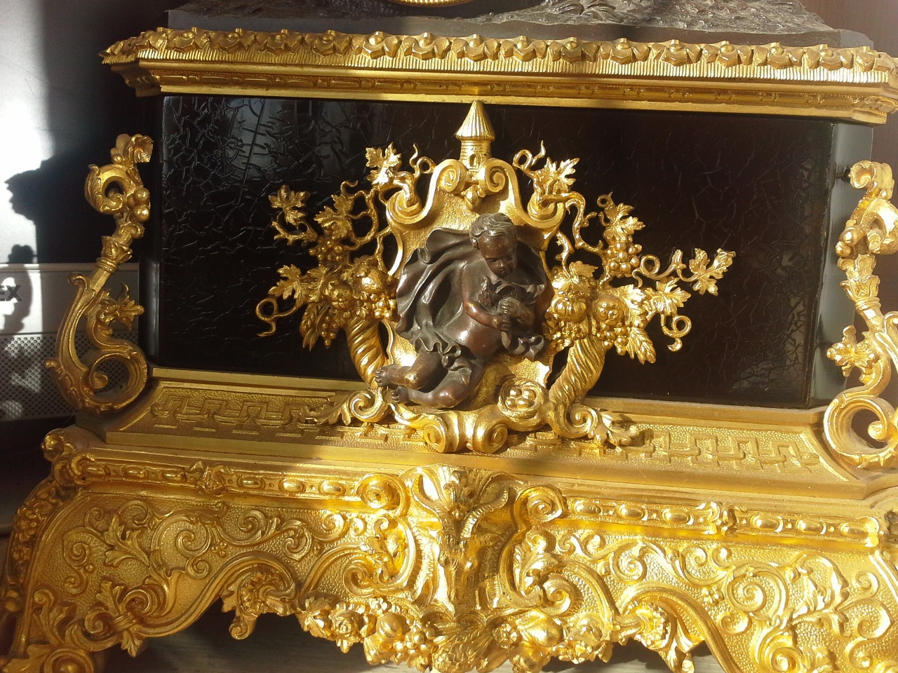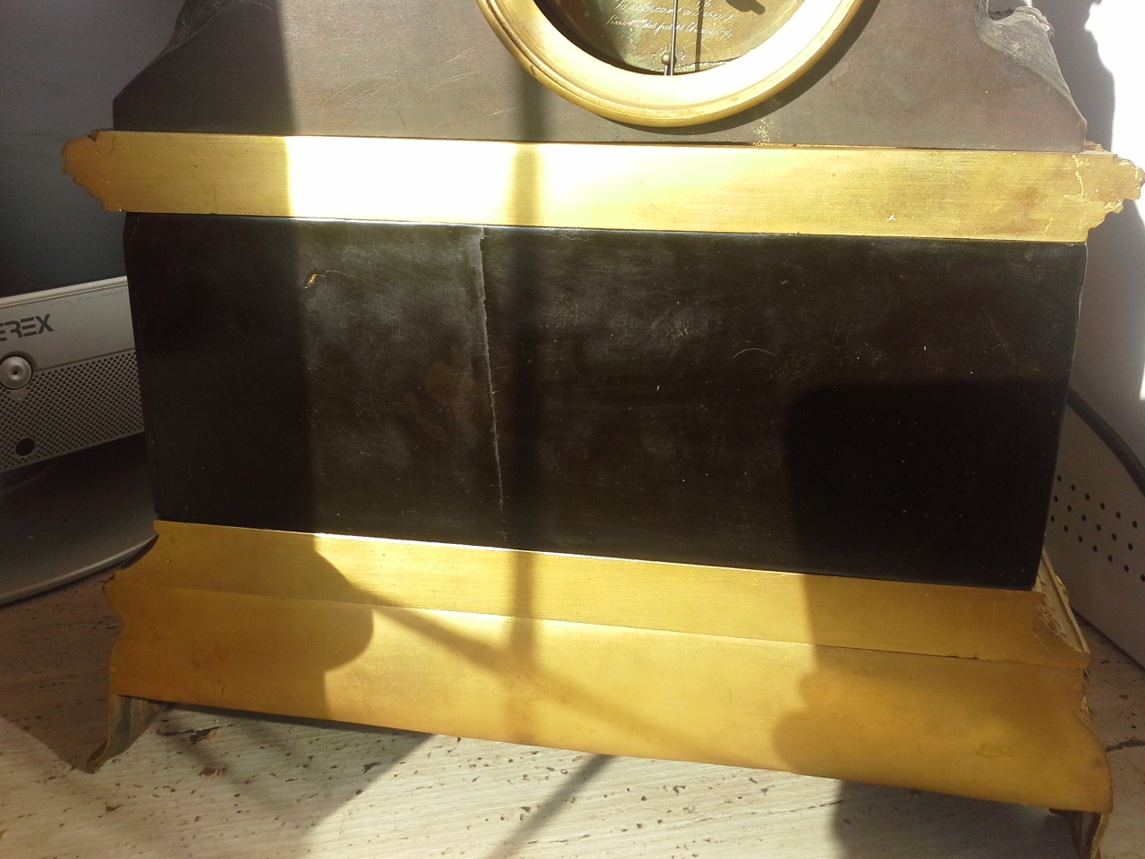 Французские каминные часы Bassereau. Думаю, что первая половина 19 века. Прошу совета в реставрации их каменной части. Какой то нехороший человек залил толстым слоем лака поверхность камня. Думаю мрамор или сланец. Лак со временем потрескался, на фото хорошо видно. Говорят, что лак - мебельный НЦ. Как их привести в оригинальный вид? Камень не цельный. Каменные пластины наклеены на корпус. Как их снять не повредив? Или можно не снимая? Как и чем отполировать в домашних условиях? Можно ли реставрировать трещину на задней части и чем маскировать щели на углах в месте соединения плиток?