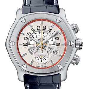 Часы футбольного клуба Арсенал - на темно-синем ремне из кожи аллигатора, представлены в нескольких серебристых оттенках, с золотыми секундными и минутными стрелками на эмблеме.