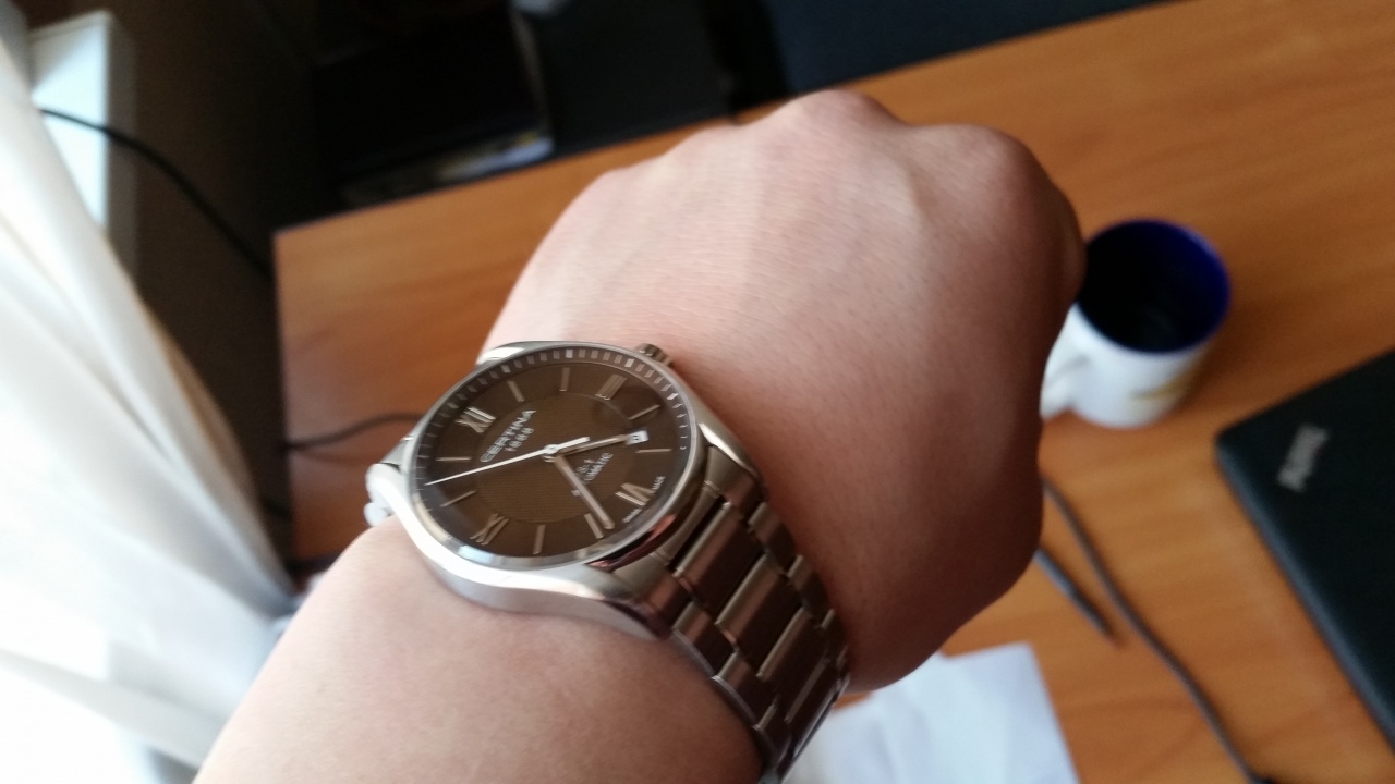 Решил проявить оригинальность, вроде и неплохо, конечно браслет на застежке бабочка, был бы более в тему, но видно делался он под более спортивную модель с прицелом на циферблате, данная модель, из линейки выделяется, родированными стрелками метками
