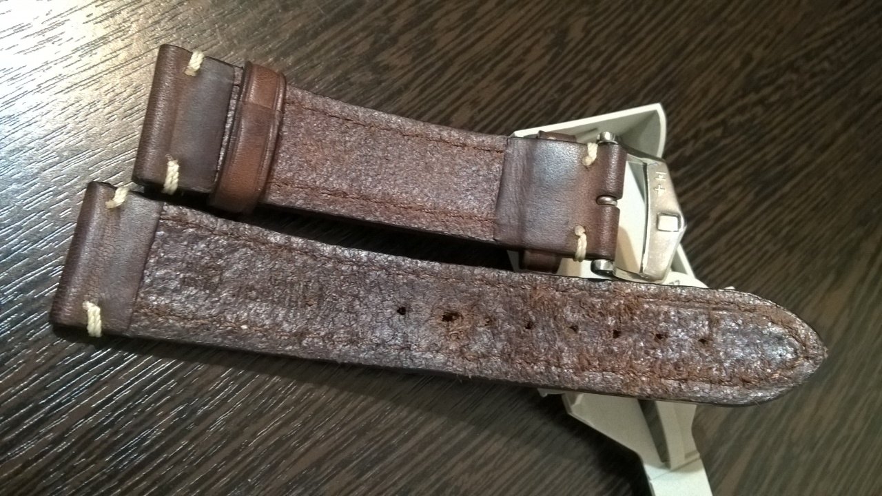 В отличном состоянии, немного б/у - носил 1 неделю. От застежки остались две небольшие полоски, в остальном как из магазина.