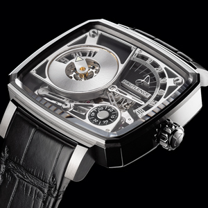 Мануфактурный механизм с ручным заводом, с прыгающей индикацией часов и ретроградной - минут, на 24 камнях, с частотой 21600 полуколебаний в час, отделкой Côtes de Genève, вручную скошенными мостами, индивидуальным номером и запасом хода 40 часов.