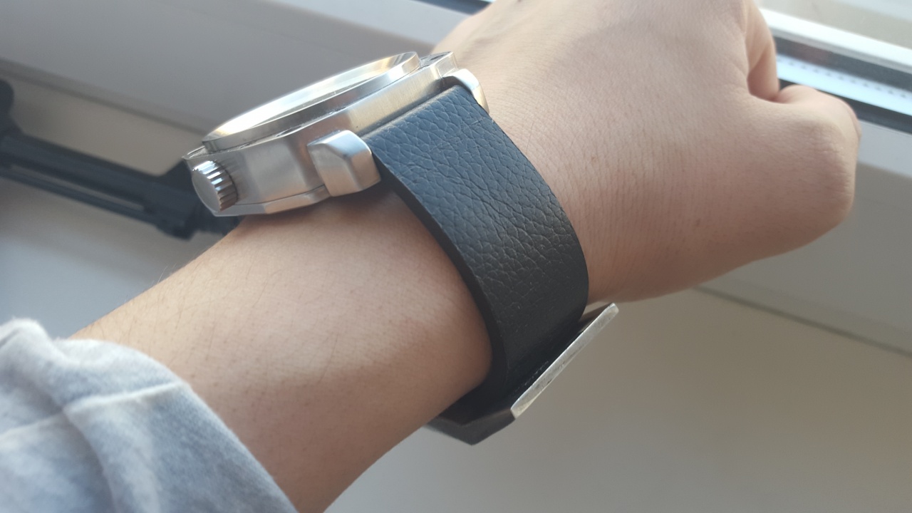 Состояние отличное. Часы полировались и обслуживались. В комплекте все коробки, документы, два оригинальных ремня + заказной ремень с серебряной пряжкой от "Rolko".