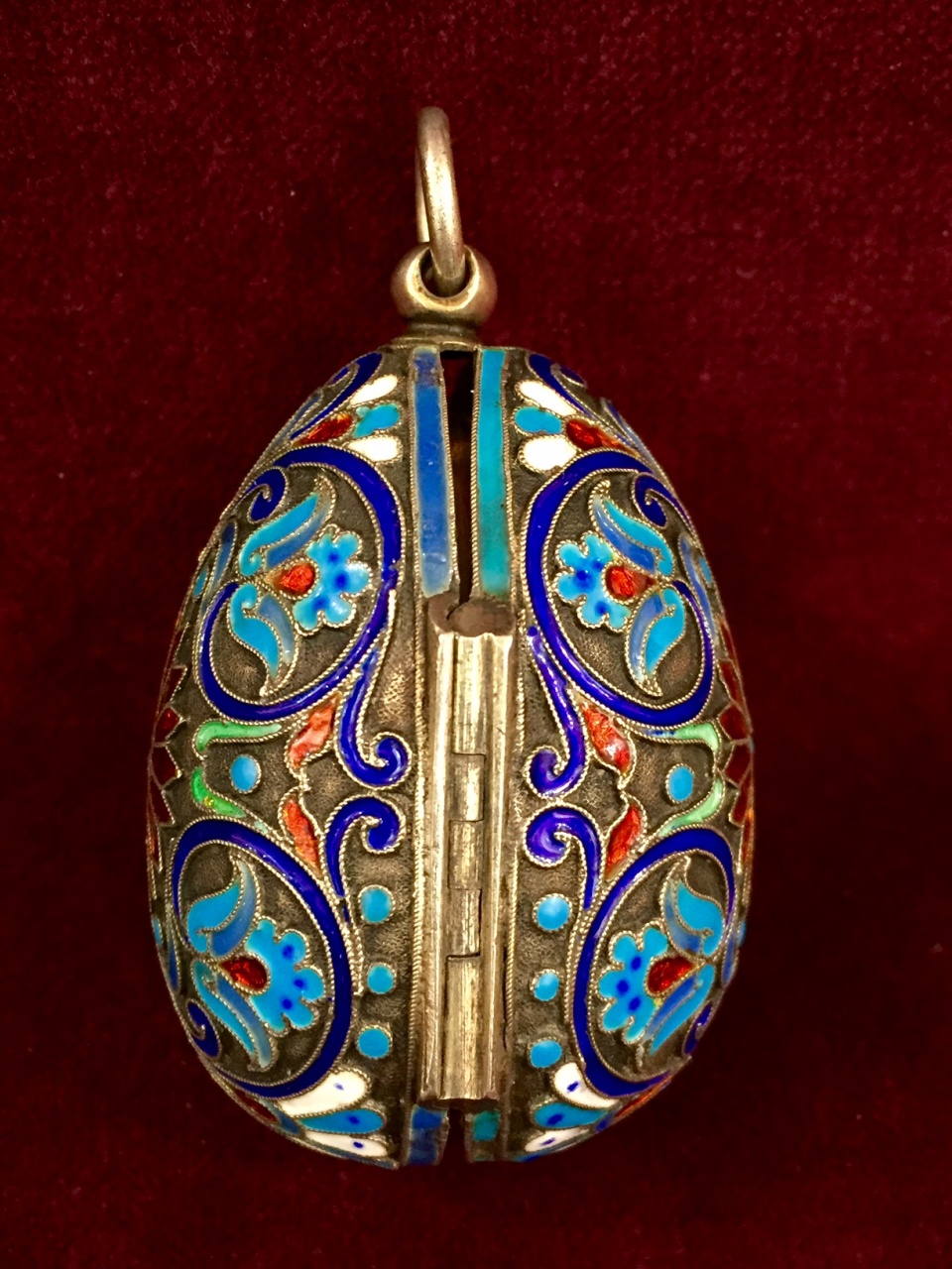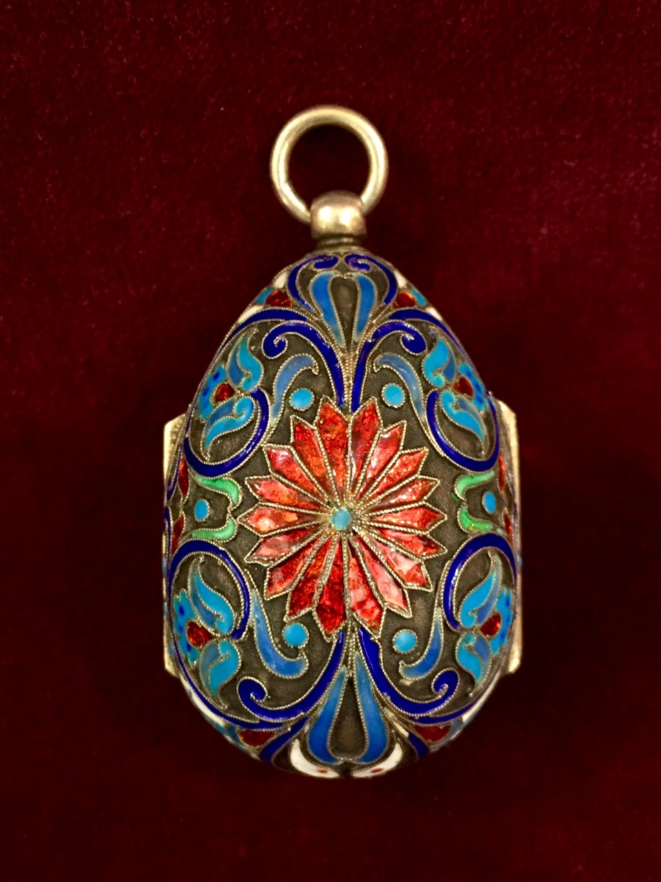 Серебро 84 пробы, живописная эмаль по скани, роспись, золочение.