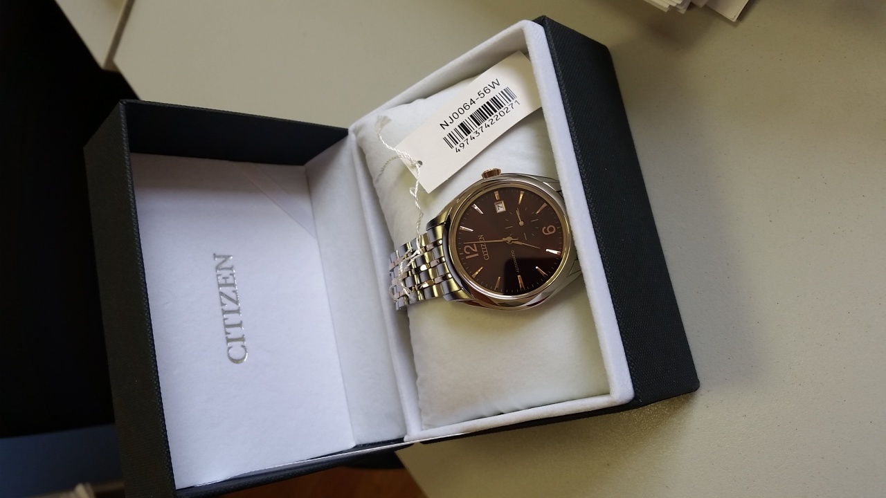 Ну вот прибыл мой очередной японский гражданин NJ0064-56W заказанный на DFI. 12 апреля оплатил, 21 апреля получил на почте свой заказ. Считаю,что сработали на отлично! После долгих раздумий об Оранжевом Монстре выбор пал на данную модель. Огорчили отзывы о механизме Монстра. О том,что если не Seiko, то Citizen,я не сомневался так как 2 года меня радует Citizen NH8320-50A, к тому же уважаемый Dima343 часто рекомендовал многим данную модель как необычную с боковой секундой и механизмом с прямым приводом. Односторонний автоподзавод у Citizen очень эффективный.