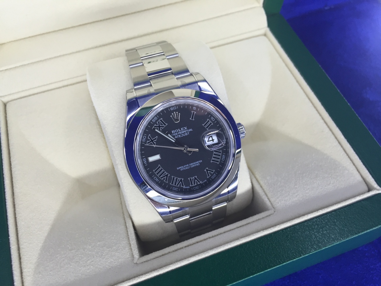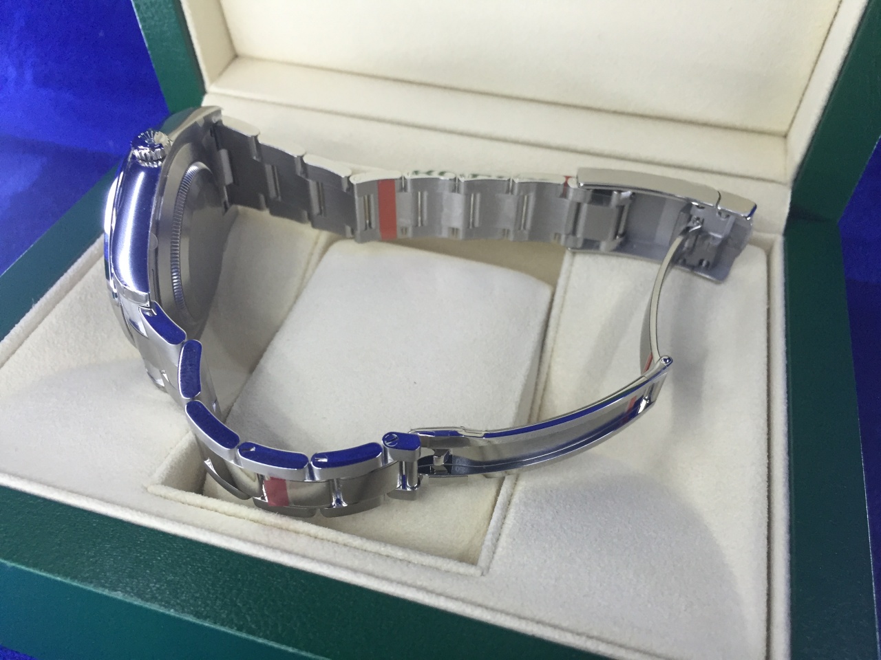 КОРПУС Oyster, 41 мм, сталь, КОНСТРУКЦИЯ OYSTER Цельный корпус, привинчиваемые крышка и заводная головка, ДИАМЕТР 41 мм, МАТЕРИАЛ Сталь 904L, БЕЗЕЛЬ Гладкий, ЗАВОДНАЯ ГОЛОВКА Привинчиваемая, с системой двойной герметизации Twinlock, СТЕКЛО Сапфировое, устойчивое к появлению царапин, циклопная линза в окошке индикации даты, ВОДОНЕПРОНИЦАЕМОСТЬ До 100 м, МЕХАНИЗМ Perpetual, автоматический подзавод, КАЛИБР 3136, производство Rolex, ФУНКЦИИ Центральные часовая, минутная и секундная стрелки. Мгновенно устанавливаемая дата с возможностью быстрой корректировки. Возможность остановки секундной стрелки для выставления точного времени, ТОЧНОСТЬ Сертификат COSC, ОСЦИЛЛЯТОР Синяя парамагнитная спираль Parachrom. Эффективная противоударная система Paraflex, ЗАВОД ЧАСОВ Автоматический подзавод в двух направлениях с помощью ротора Perpetual, БРАСЛЕТ Oyster, плоские трехрядные звенья, МАТЕРИАЛ БРАСЛЕТА Сталь 904L, ЗАСТЕЖКА Oysterclasp с раскладывающейся пряжкой и удлиняющим до 5 мм звеном Easylink, ЦИФЕРБЛАТ черный. Дата покупки апрель 2016