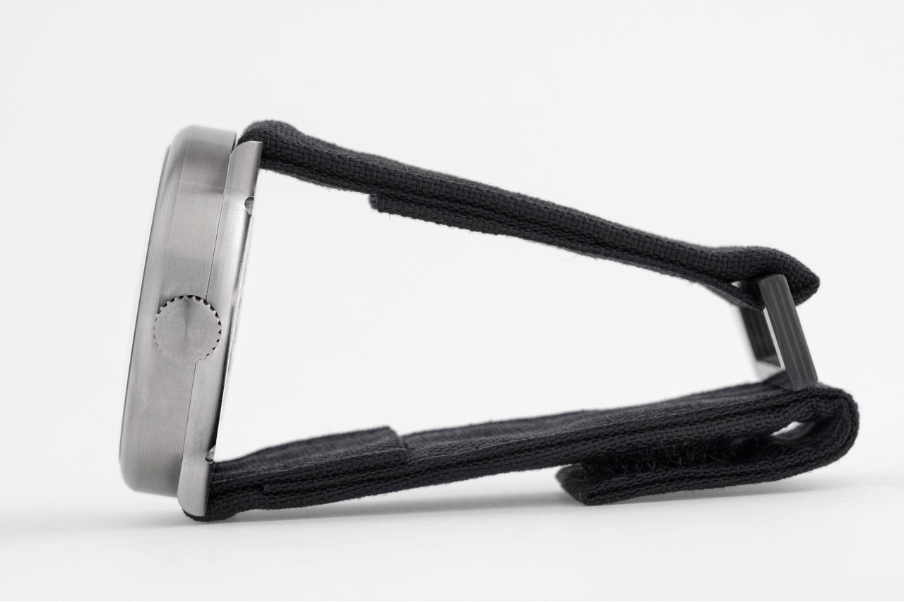 Поставляется на черном кевларовом ремешке с застежкой из черного карбона.