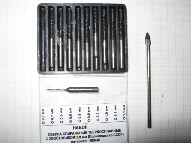 продам свёрла твёрдосплавные 0.7 -- 1.6 мм с хвостовиком 3 мм, 100-120 руб, центровки 0.7 -- 1.2 мм 170-190 руб, вк6м; мечики 0.45 -- 1.2 мм 180-220 руб. свёрла стальные от 0.1 мм с хвостовиком 1-3 мм необходимо сформировать заказ из мин. 10 шт.