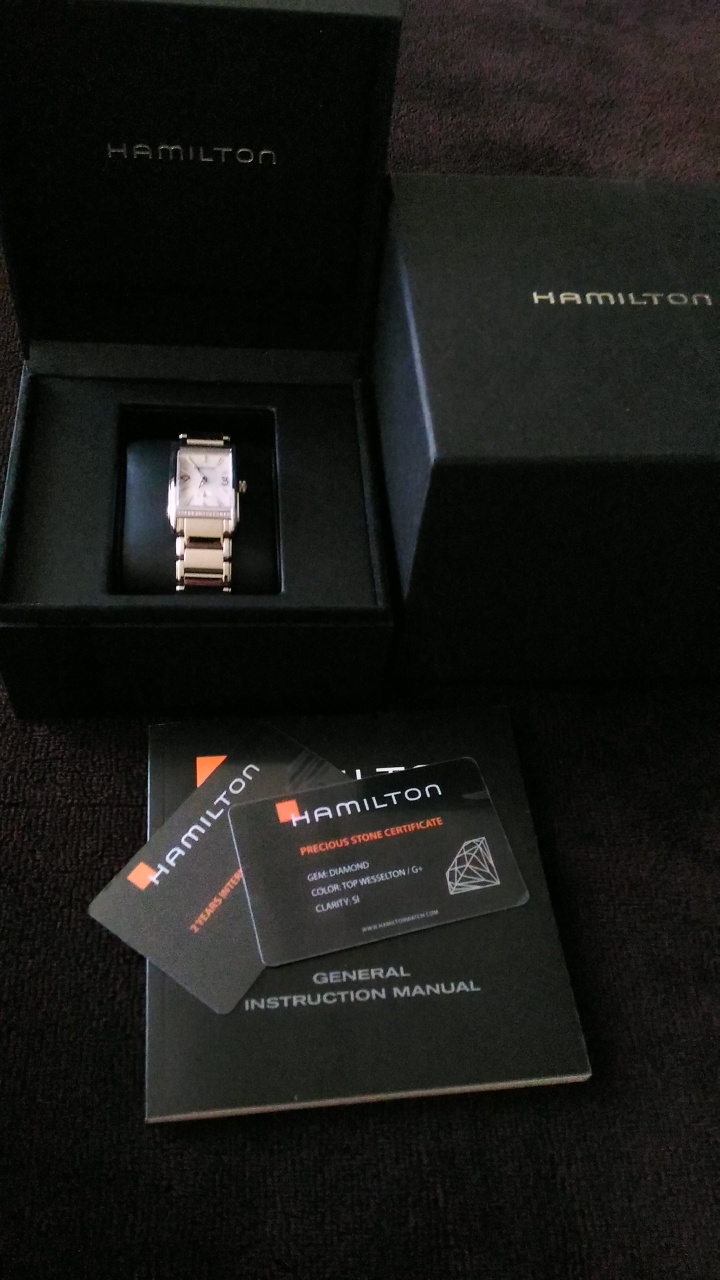 Циферблат часов белый, перламутровый, украшен брилиантами (4 шт) на позиции 6 и 12 часов. Характеристики камней есть на карточке сертификата
