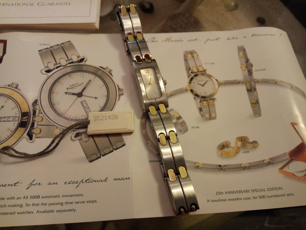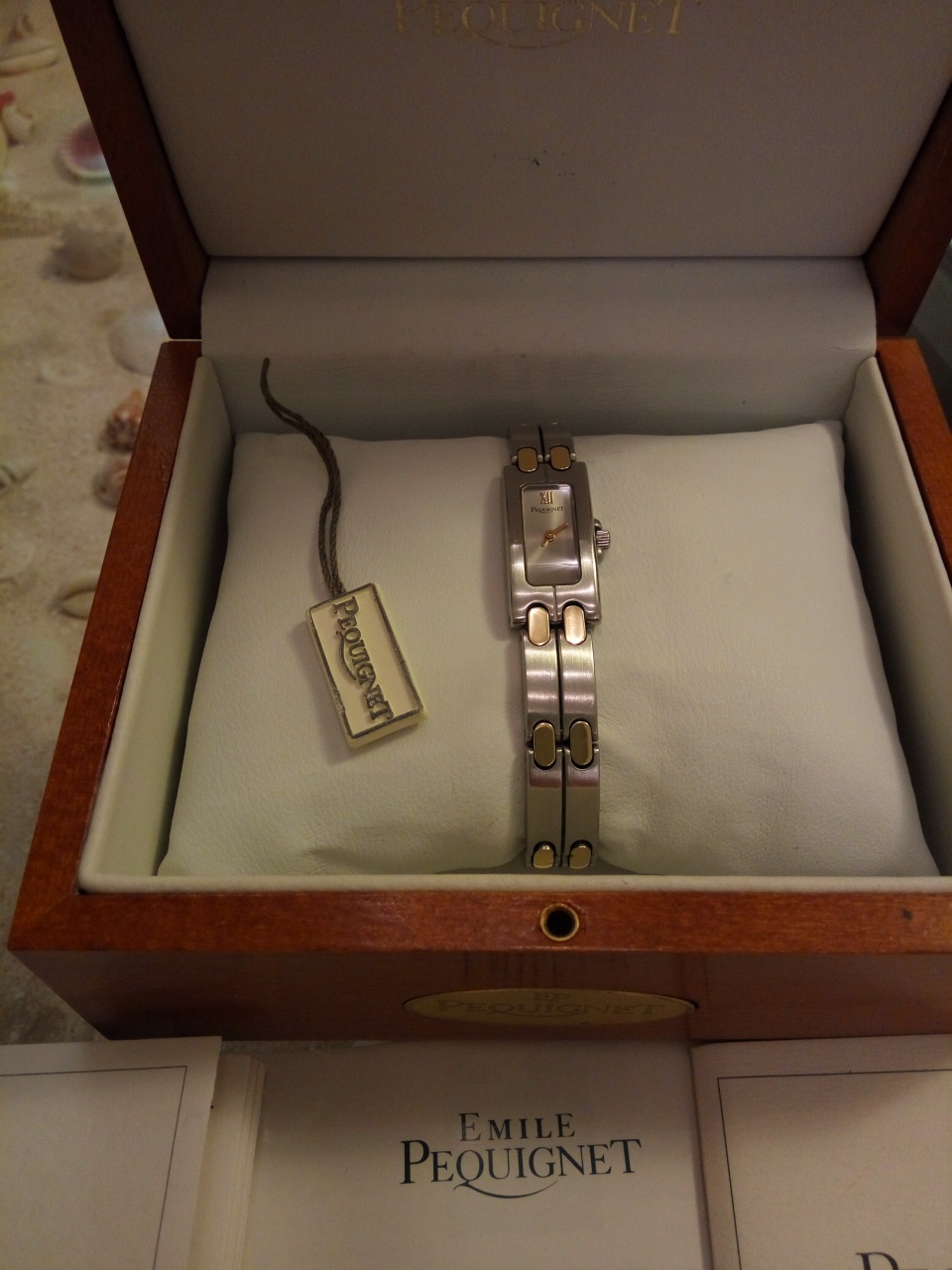 Продаются женские часы. Носились мало и бережно. Имеют небольшие следы износа.Браслет с золотыми пластинами. Не полированные.В комплекте документы и коробка.Сапфировое стекло.Швейцарский кварцевый механизм.Водонепроницаемость 3 ATM.