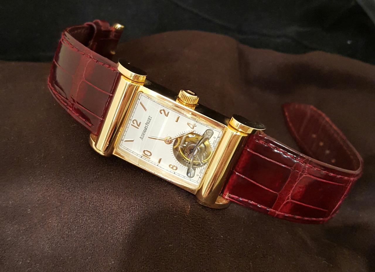 Audemars Piguet Canapé Tourbillon. Корпус желтое золото 18K. Лимитированная серия из 25 экземпляров. Турбийон, часы, минуты. Открытая задняя крышка. Без коробки и документов. Не полировались.