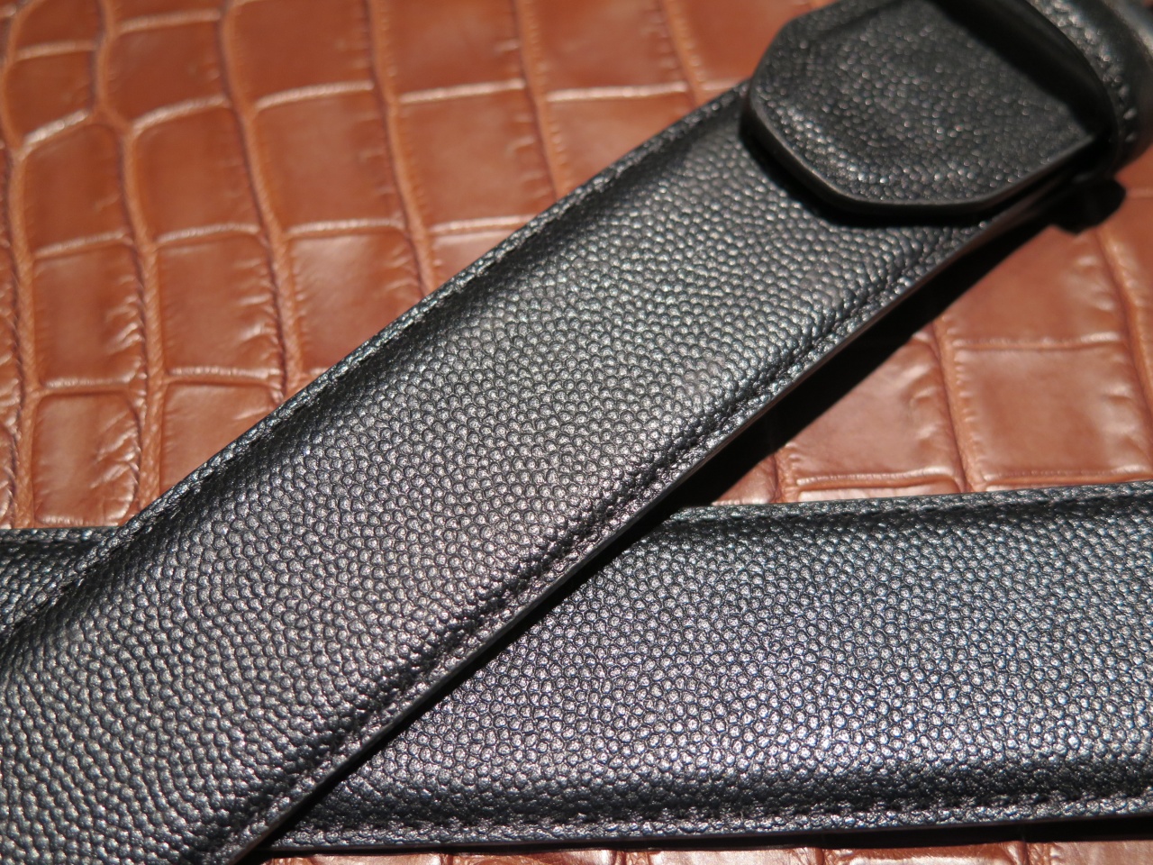 Материал: 100% телячья кожа высочайшего качества выделки со специальной, «зернистой» обработкой поверхности кожи – «caviar», с «Чёрной» стороны ремня, и гладкая телячья кожа – с «Тёмно-синей» стороны ремня.