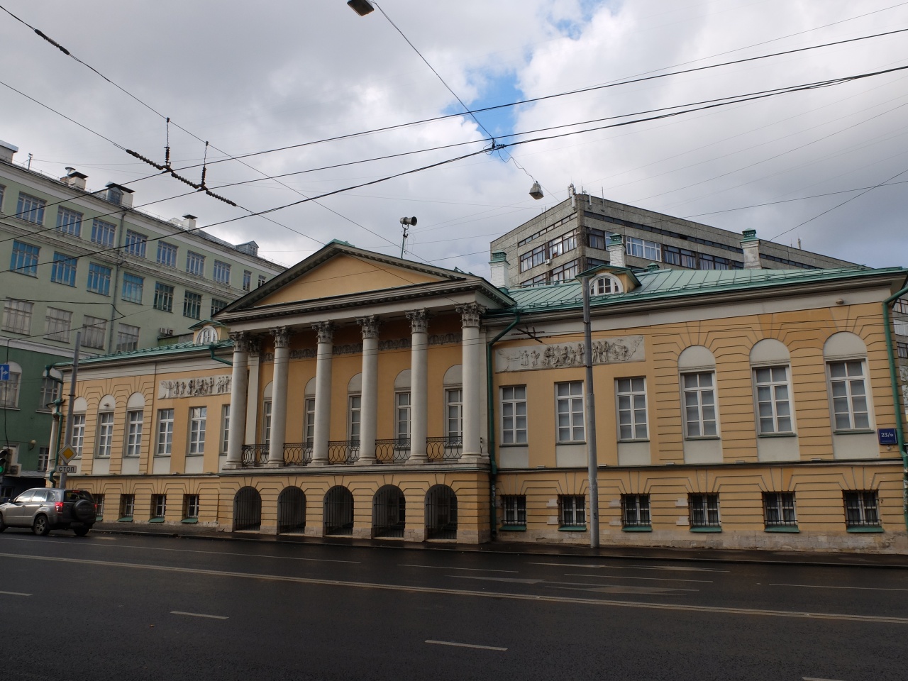 Дальше в сторону площади Разгуляй есть еще несколько интересных зданий: огромный дворец, который также, как и пара на Ново-Басманной, принадлежал «Бриллиантовому князю». Не уверен, но мне сдается, что он надстроен на пару - тройку этажей. Ну зачем, в самом деле, князю пятиэтажка без лифта? Сейчас там институт, если правильно помню – химического машиностроения.