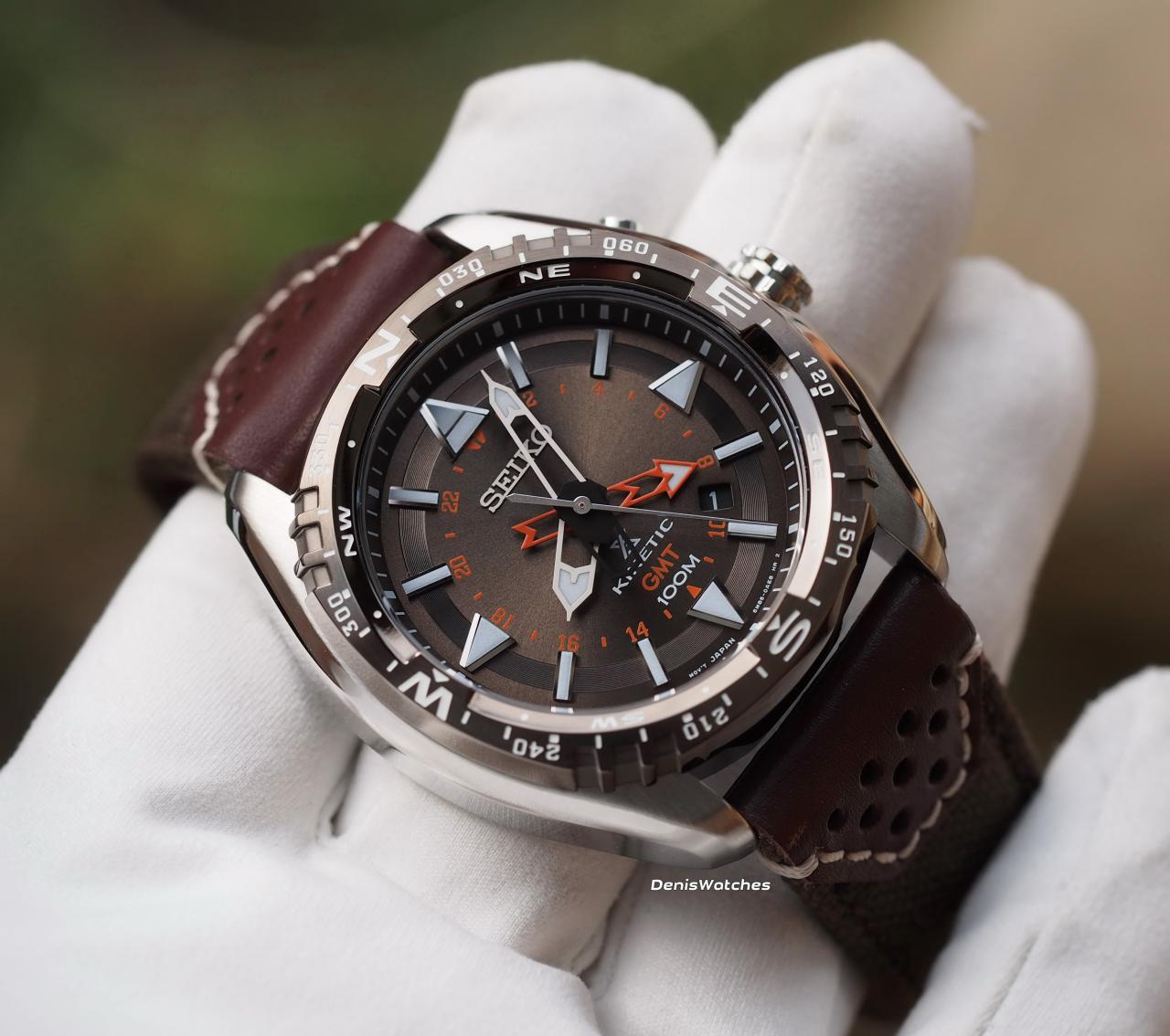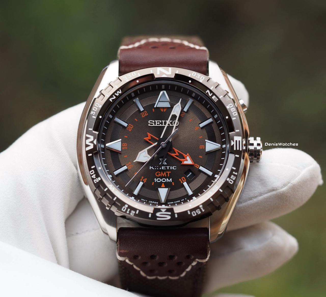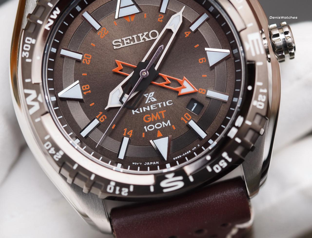Очень красивый коричневый циферблат, высокотехнологичный калибр Seiko Kinetic