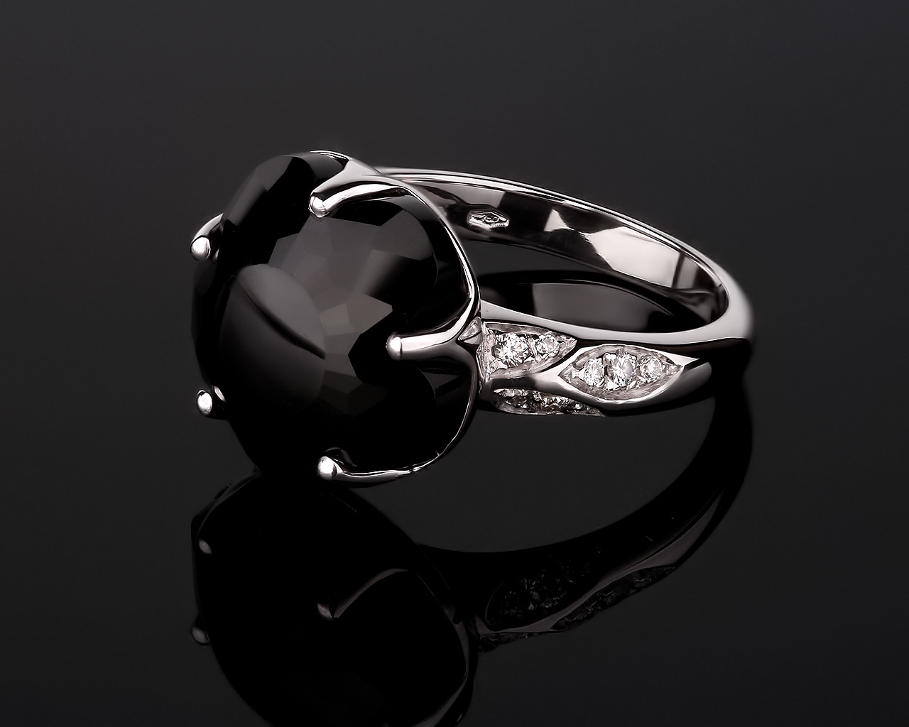 Представляем вашему вниманию современное золотое кольцо с ониксом и бриллиантами 0.12ct.