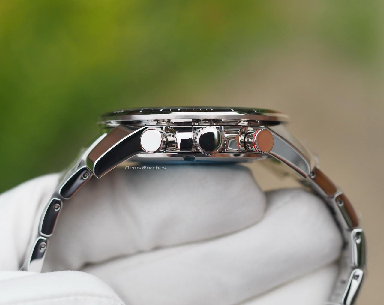 Стальной корпус, сатин + полировка, эргономичная форма ушек, часы хорошо "садятся" даже на небольшое запястье
