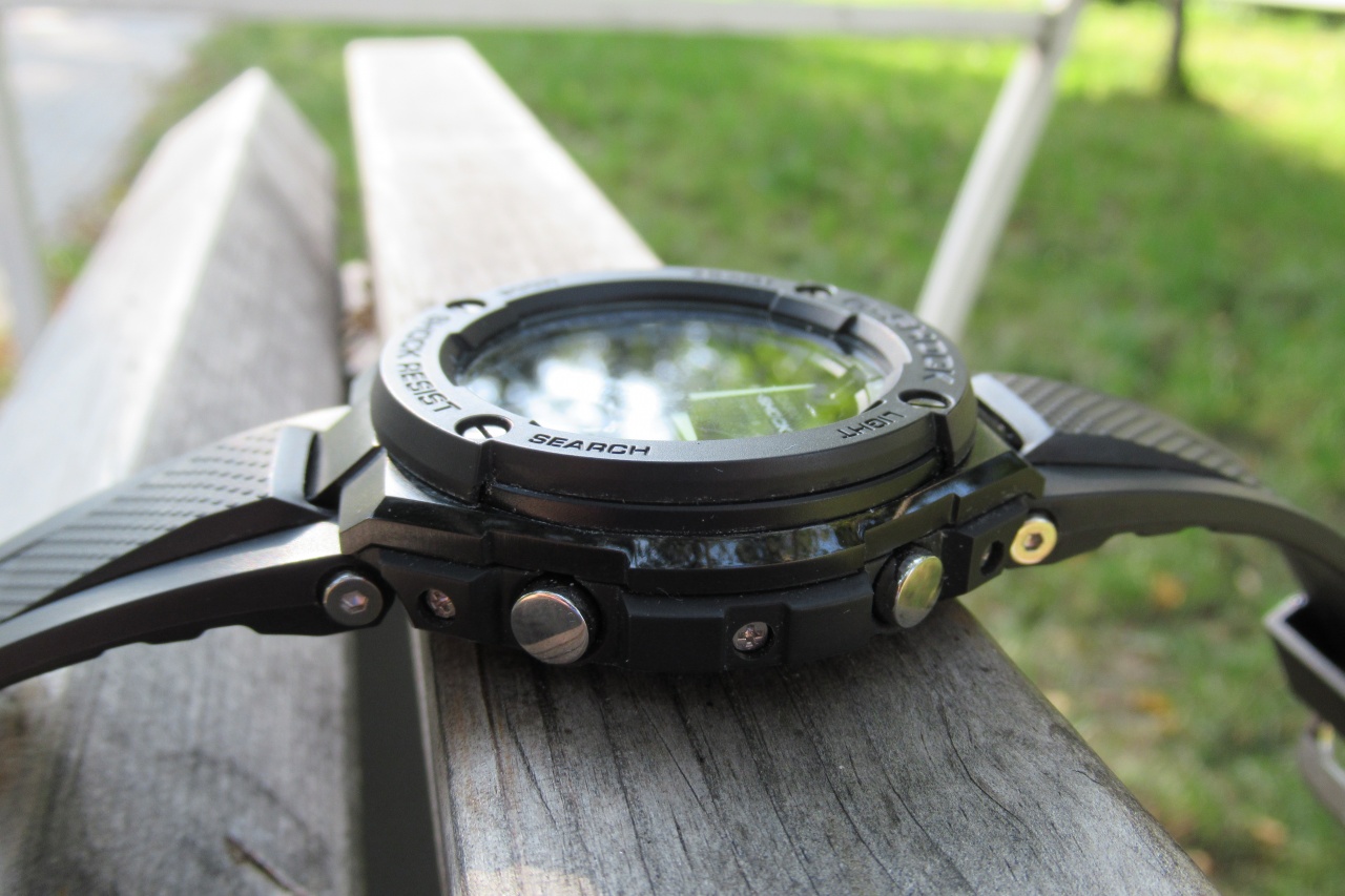 Этот сандвич из металла и пластика не только ударопрочный, но и легкий. Мои часы при адовых размерах весят скромные 97 г. С металлическим безелем было бы 108 г, а на стальном браслете – уже 184 г. Еще один аргумент в пользу W100G.