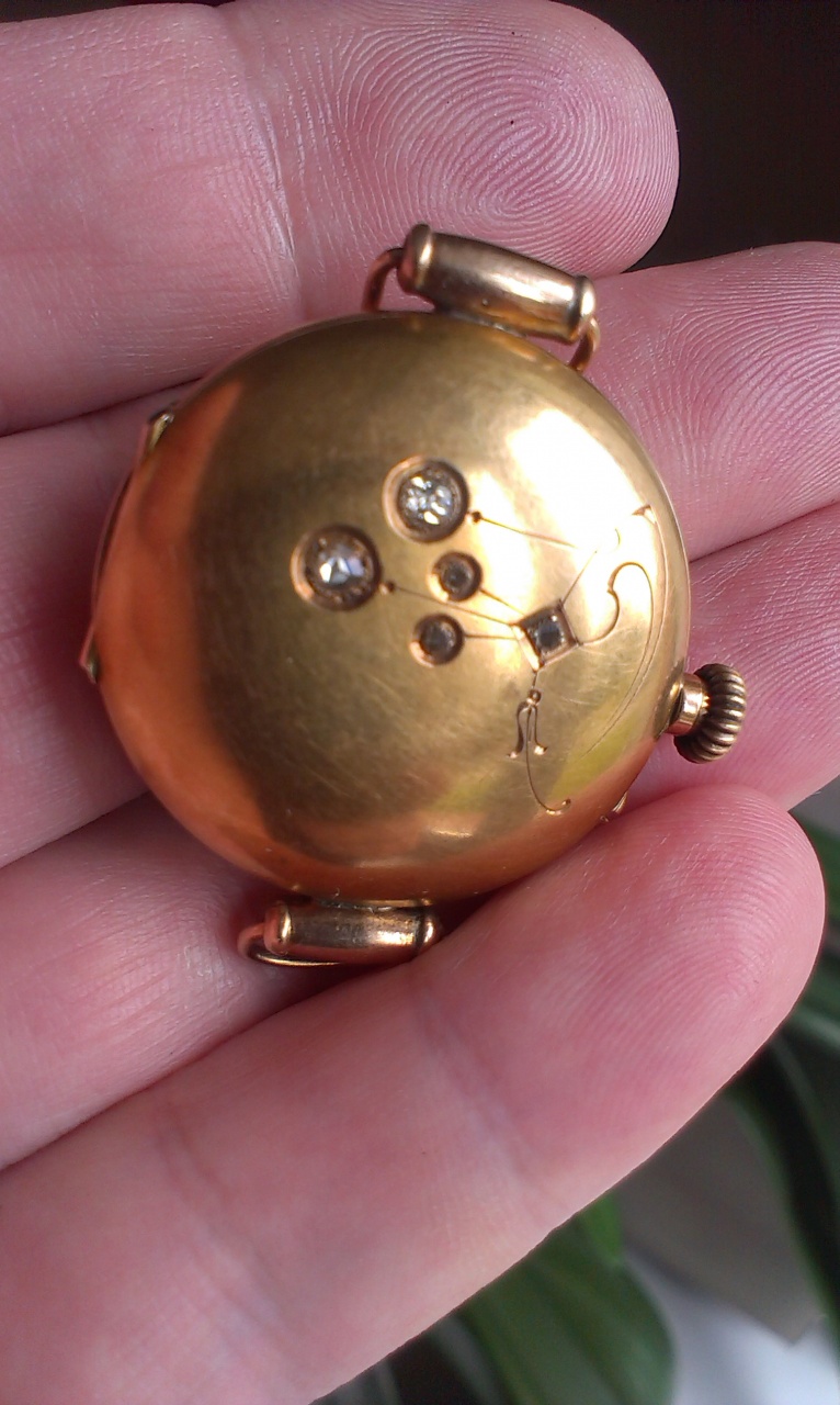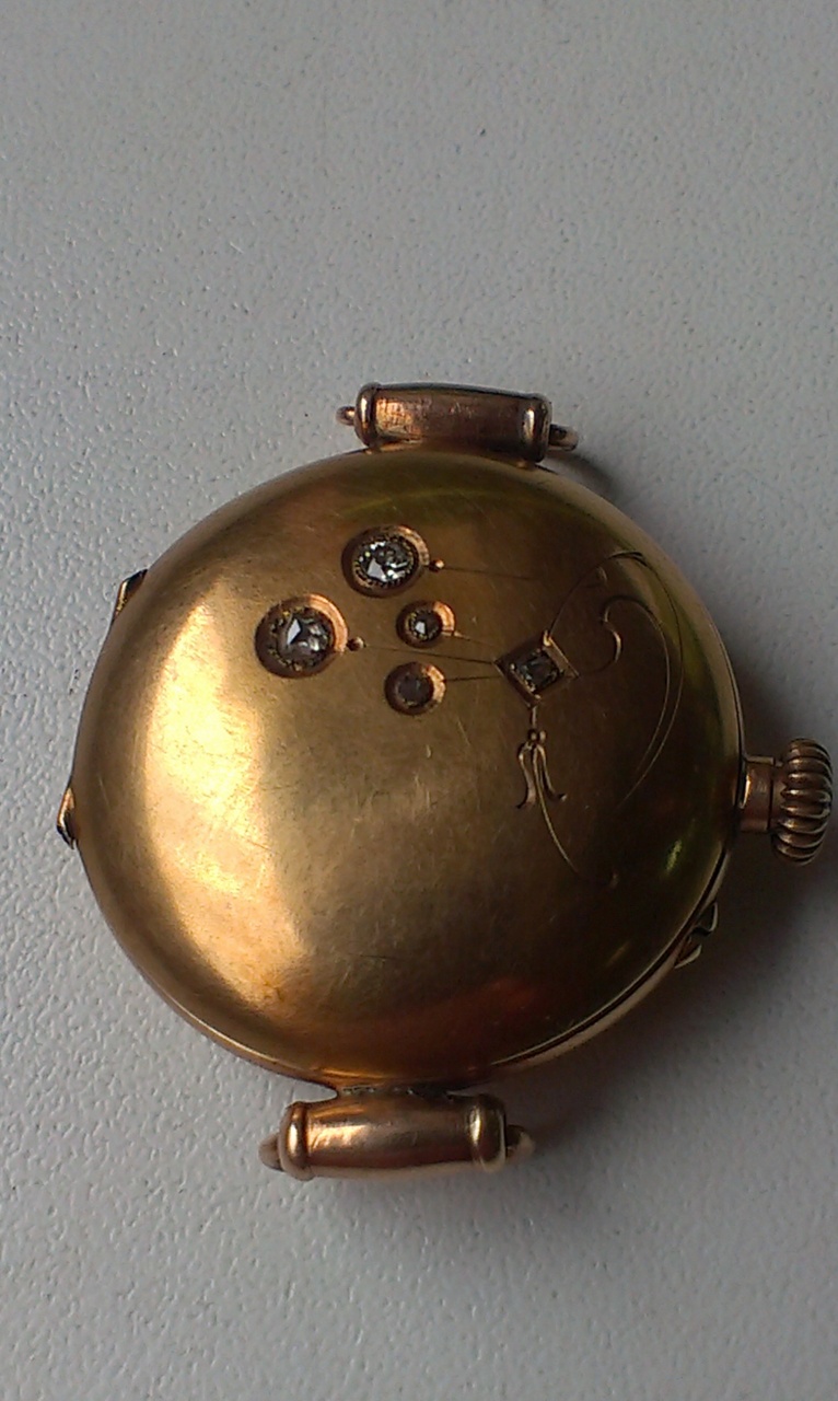 Подскажите по часикам, проба стоит 56 и 14К. Диаметр около 28 мм. Вставлены пять камешков, похоже брюлики.