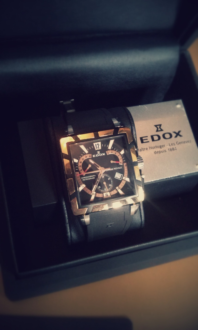 Абсолютно новые Edox Classe Royale. Кварцевый механизм, сапфировое стекло, золотое pvd покрытие, каучуковый ремешок с застежкой бабочкой. 30000 рублей. Цена салонов от 70000.