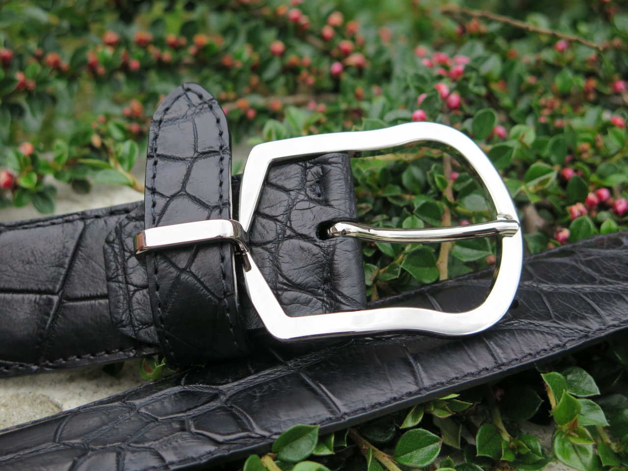 МУЖСКОЙ РЕМЕНЬ ИЗ КОЖИ АЛЛИГАТОРА. ЦВЕТ ЧЕРНЫЙ. ИТАЛИЯ