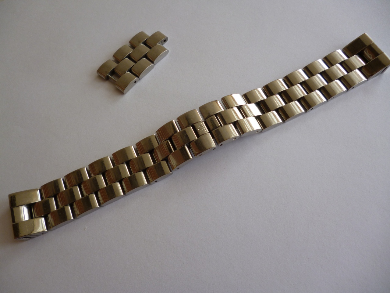 Продам браслет Baume & Mercier . Размер крепления к часам 18мм. Стоял на Hampton , но подойдёт и на другие коллекции. Браслет не новый, следы эксплуатации в виде микропотёртостей присутствуют, но состояние очень хорошее, ближе к отличному. Не полировался (после полировки будет как новый), к сожалению отполировать в данный момент не имею возможности. В комплекте два снятых звена и одно дополнительное.