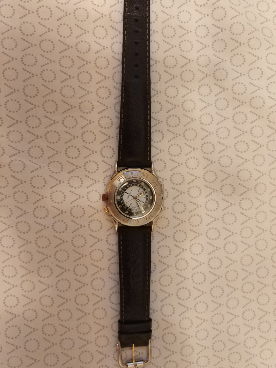 Теперь к часам. Часы - NOS (new old stock). Это настоящая Швейцария, во всех смыслах (соответствующие клейма присутствуют и на цифере, а на задней крышке). Часы оснащены двойным корпусом, верхний из которых имеет крышку с апертурой. Особенностью часов является наличие солнечного компаса. Оснащены эти чудные часики.высокоточным кварцевым механизмом от лидера по производству часовых механизмов - ETA калибра 955,122 T. Cтрелка компаса, она же GMT. Часовая стрелка направляется на солнце, при этом компас на внутреннем диске показывает стороны света. На задней крышке - гравировка вершины Лотсе в Гималаях. Часы поставляются в дорожном чехле, отличном небесполезном аксессуаре. Это не часы, это - игрушка, их не хочется выпускать из рук.Резюмируем: часы со своей историей, на отличнейшем механизме, с двумя сапфировыми стеклами, с добротнейшим ремешком из акулы, про дизайн вообще молчу) Отличнейший экземпляр в коллекцию!