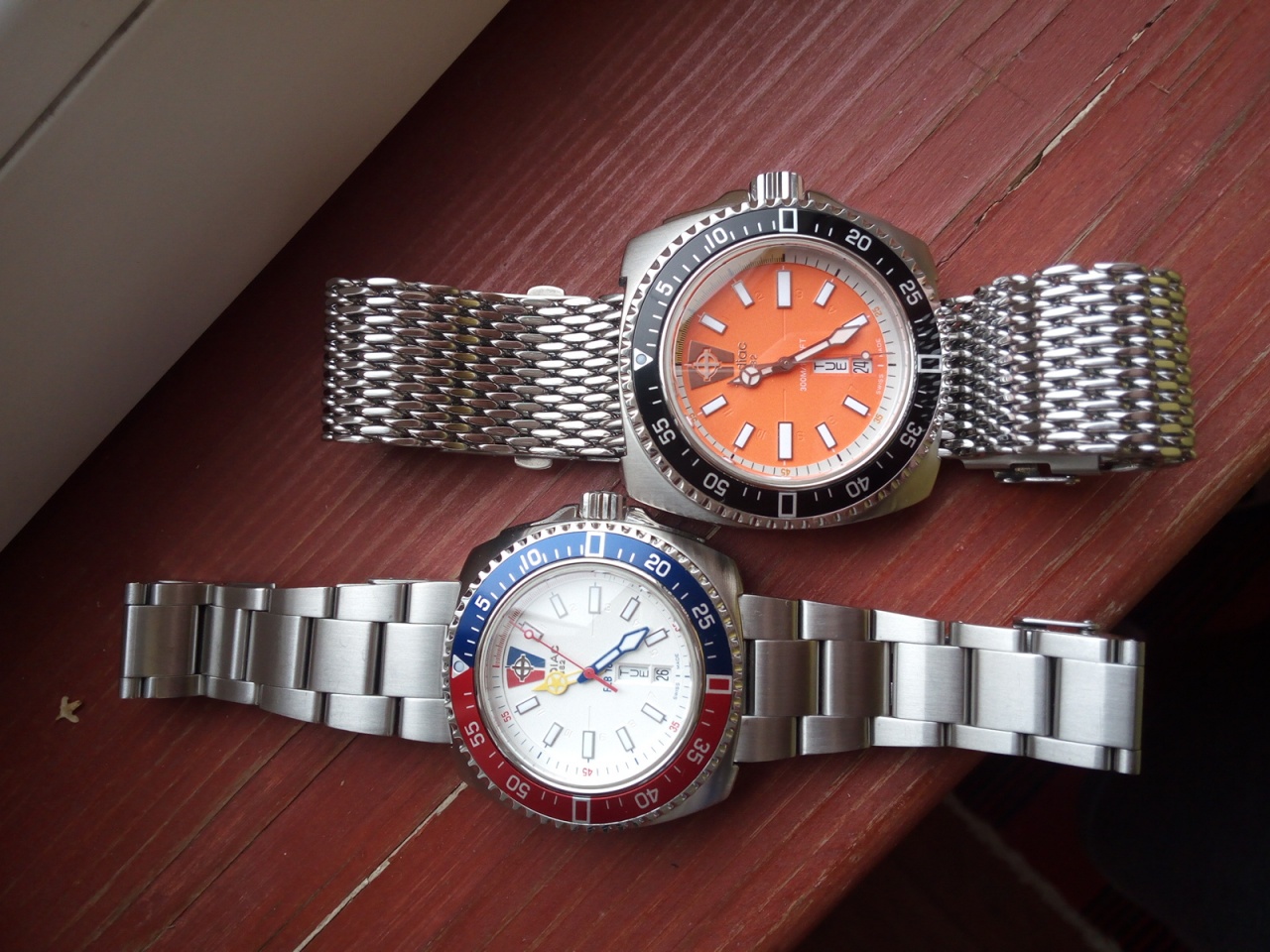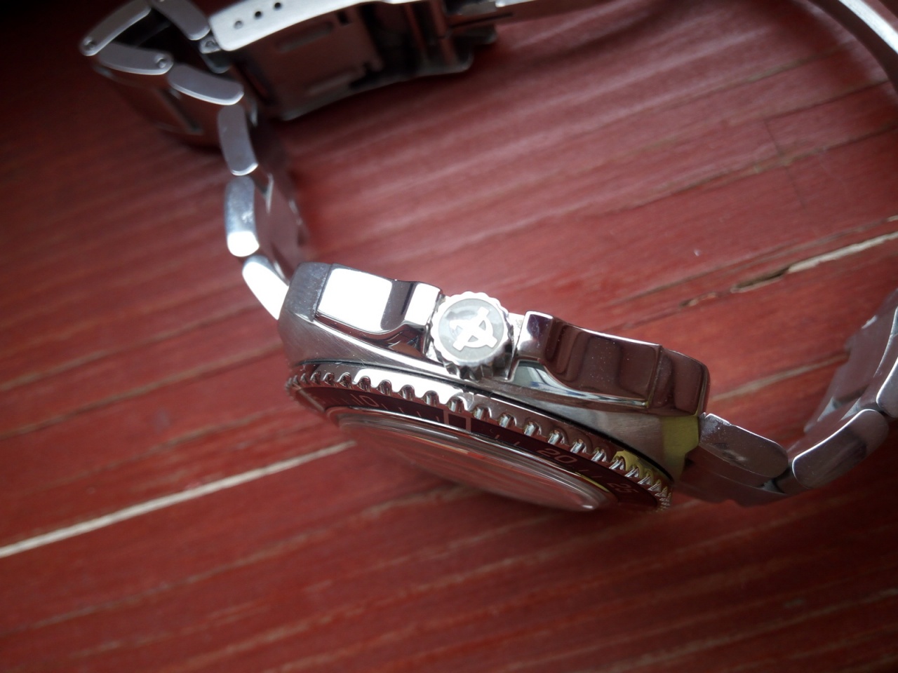 Корпус как у V-Wolf, который оранжевый, но меньше, примерно 40х40 без ЗГ. Состояние очень хорошее (стекло САПФИР чистое, по корпусу минимум следов носки). Браслет очень качественный, с дайверским расширителем, примерно на 19 см, можно уменьшить по 2 звена с каждой стороны. Водозащита 300м (заводная головка завинчивается), люм на стрелках и метках.