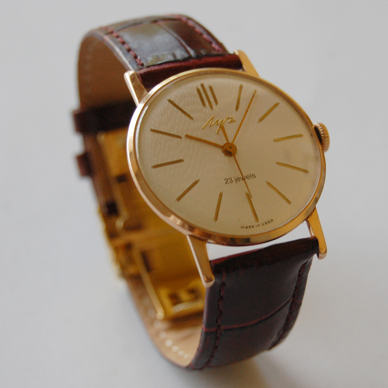Золото 583, Механизм 1МЧЗ, сделал тоньше заменив родное стекло на Cristal.